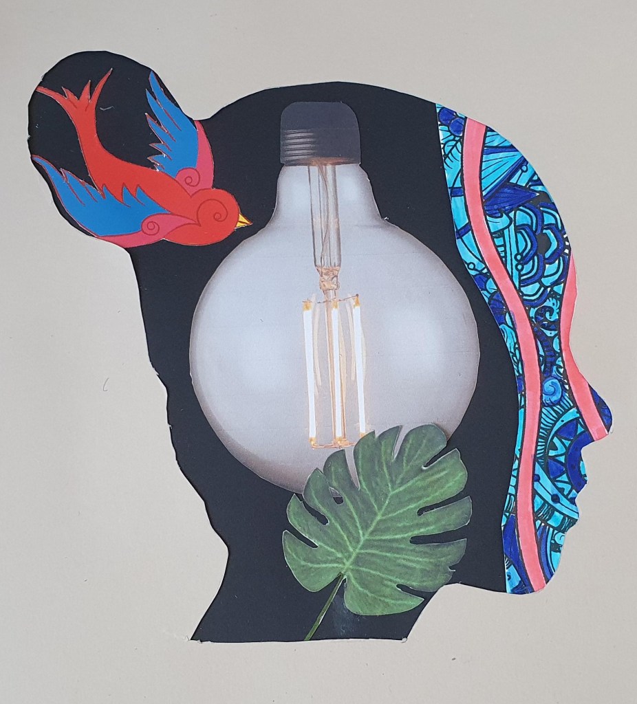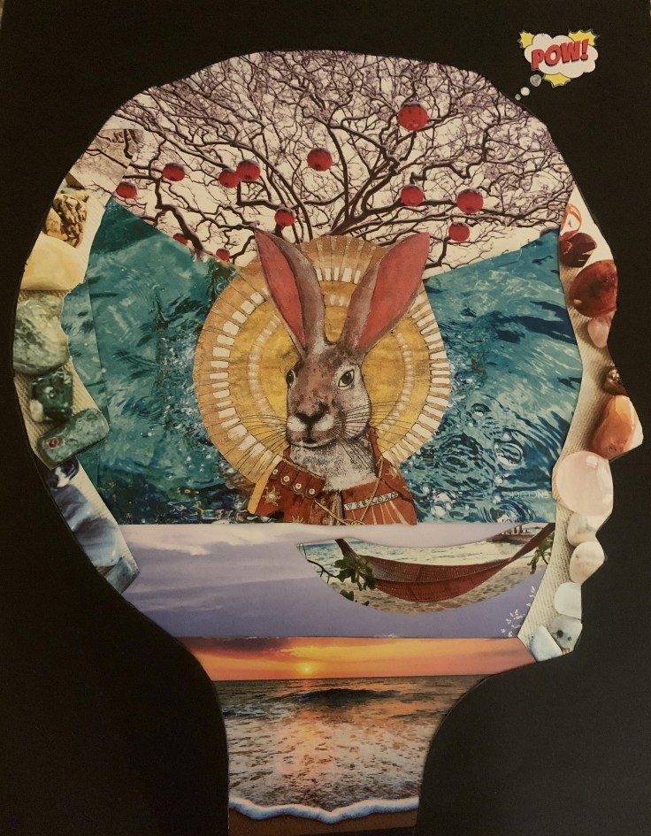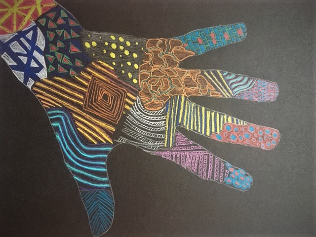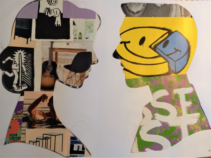 Aufgeklebt auf weißem Papier sieht er edel aus und kann sogar gerahmt werden. Von unseren Schüler sind verschiedene bunte Papiere genutzt worden, um mit der gleichen Technik eindrucksvolle Collagen zu kreieren.