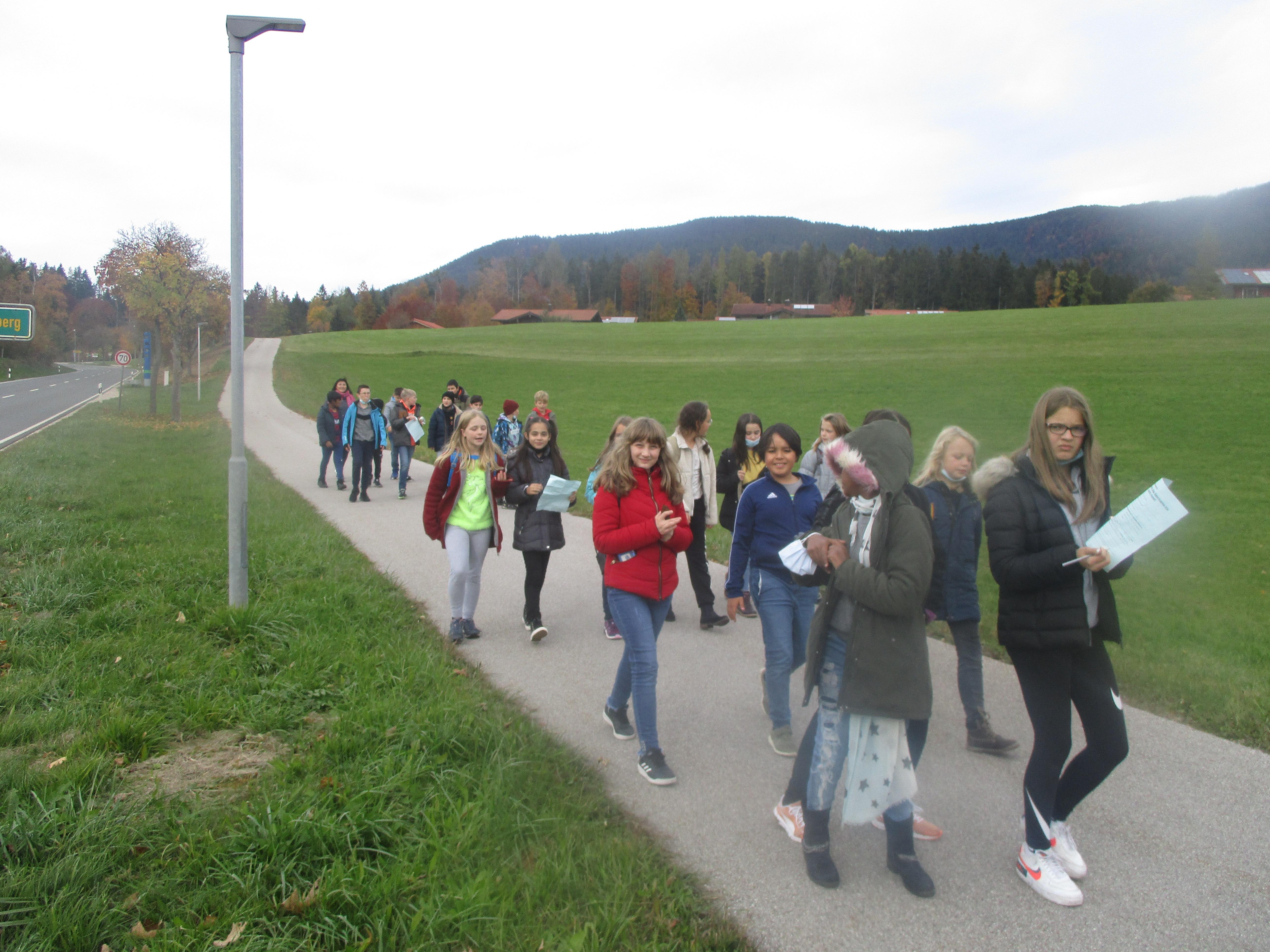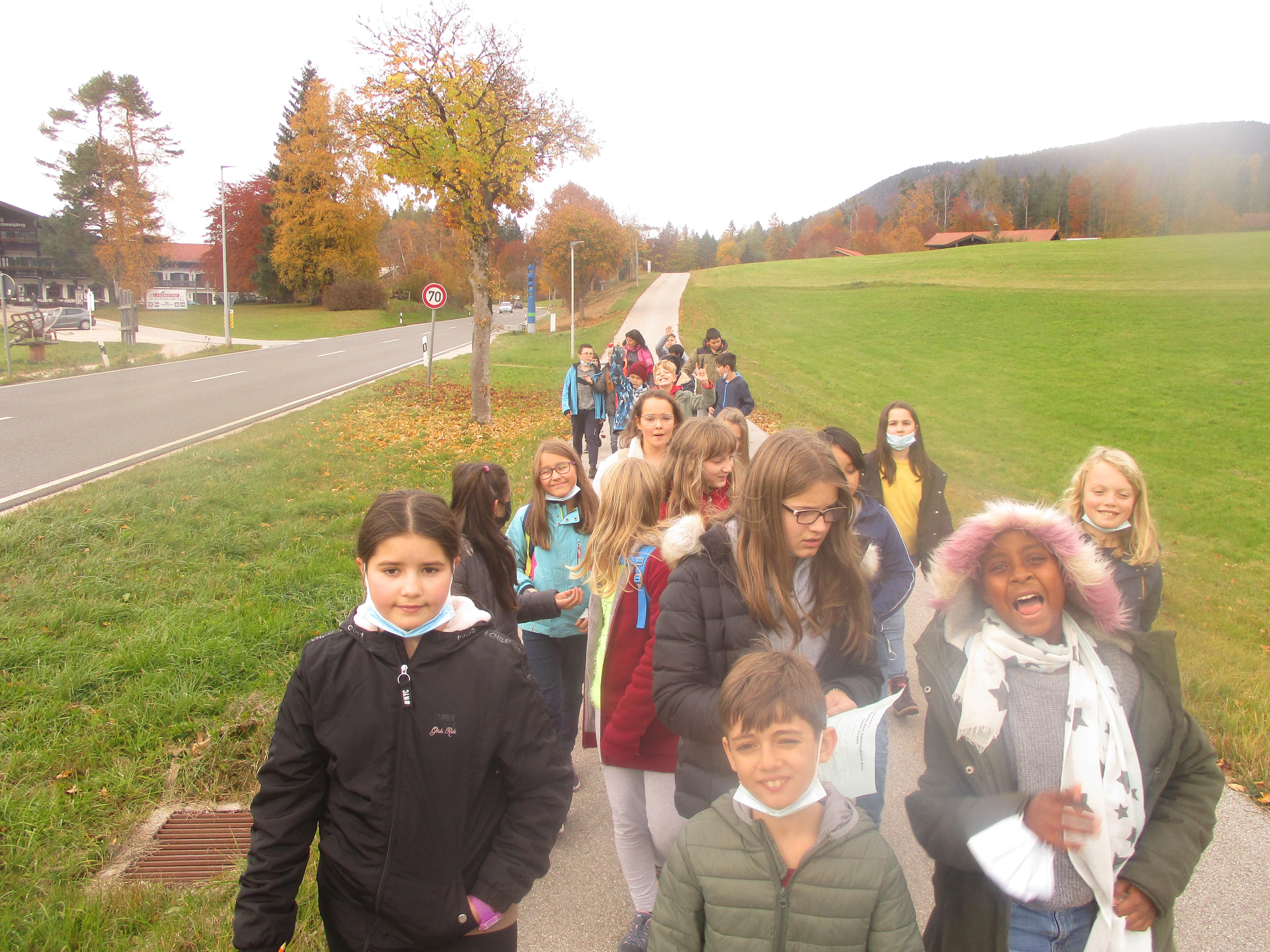 Bei wunderbarem Herbstwetter stand allen Aktivitäten in den Bayerischen Voralpen nichts im Wege. Schon am Nachmittag der Ankunft erkundete die Klasse mit einer kleinen Schnitzeljagd die Umgebung. Wer wollte, konnte auf dem Pferdehof zum Voltigieren oder aufs heißbegehrte Riesentrampolin. Am Abend gab es dann noch ein Fußballmatch.