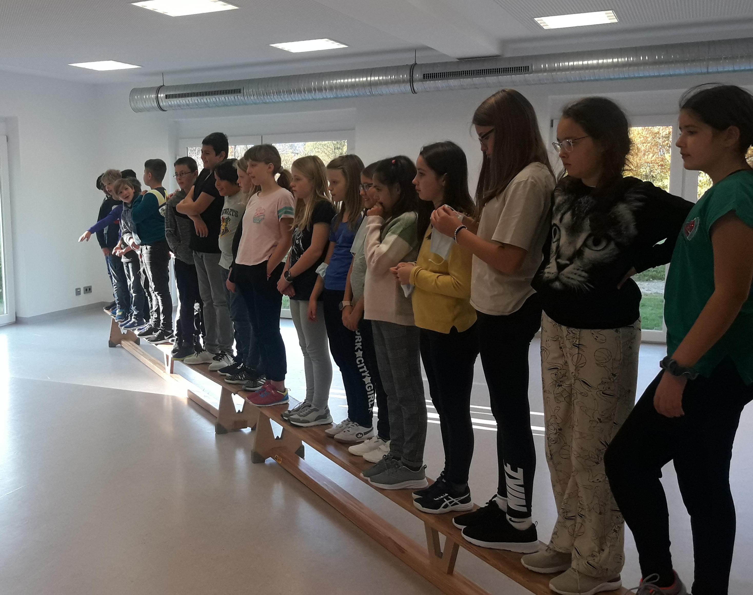 Der Vormittag des 2. Tages stand im Zeichen der Teambildung. Verschiedene Übungen sollten zeigen, wie wichtig die Klassengemeinschaft gerade in einer Ganztagsklasse ist.