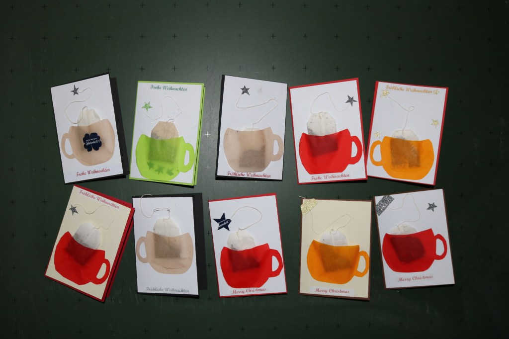 Vorbereitung auf den geplanten Weihnachtsbasar eifrig und mit viel Freude Weihnachtsgrußkarten.