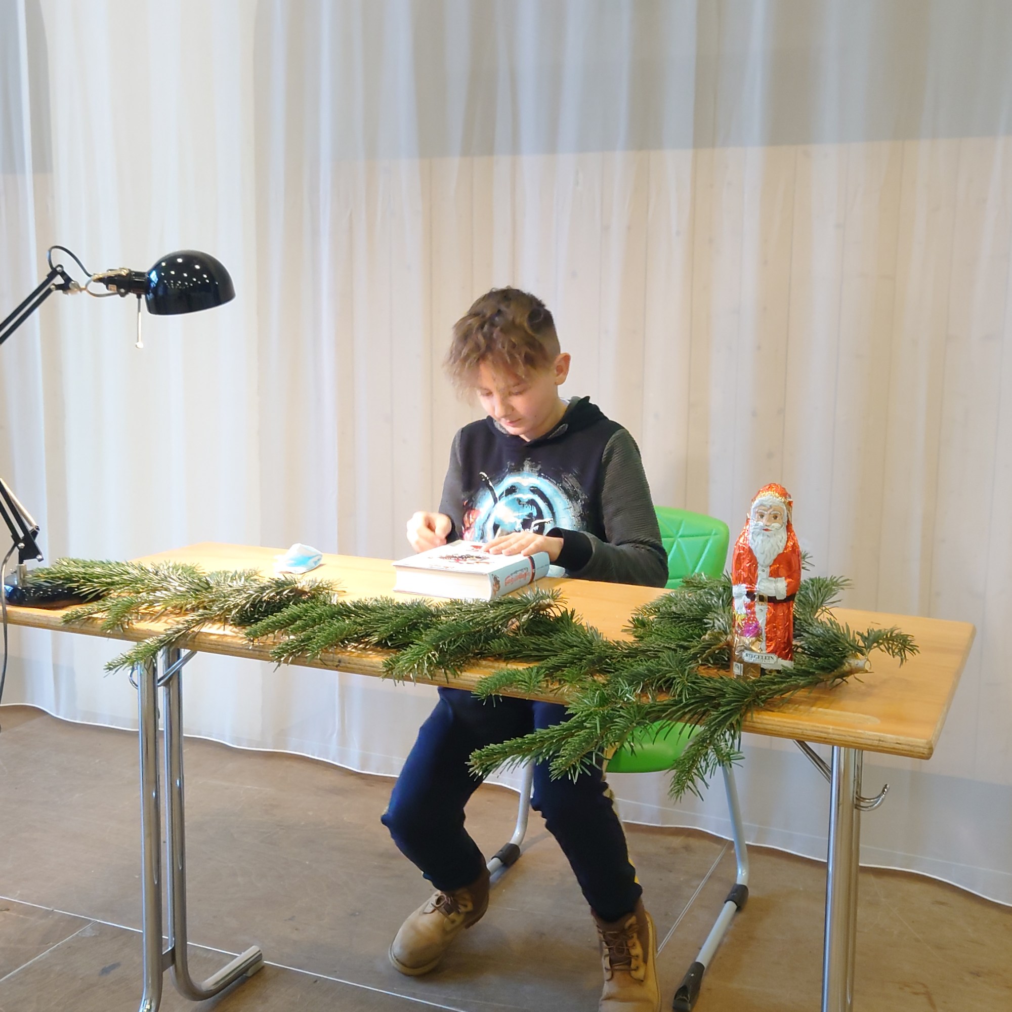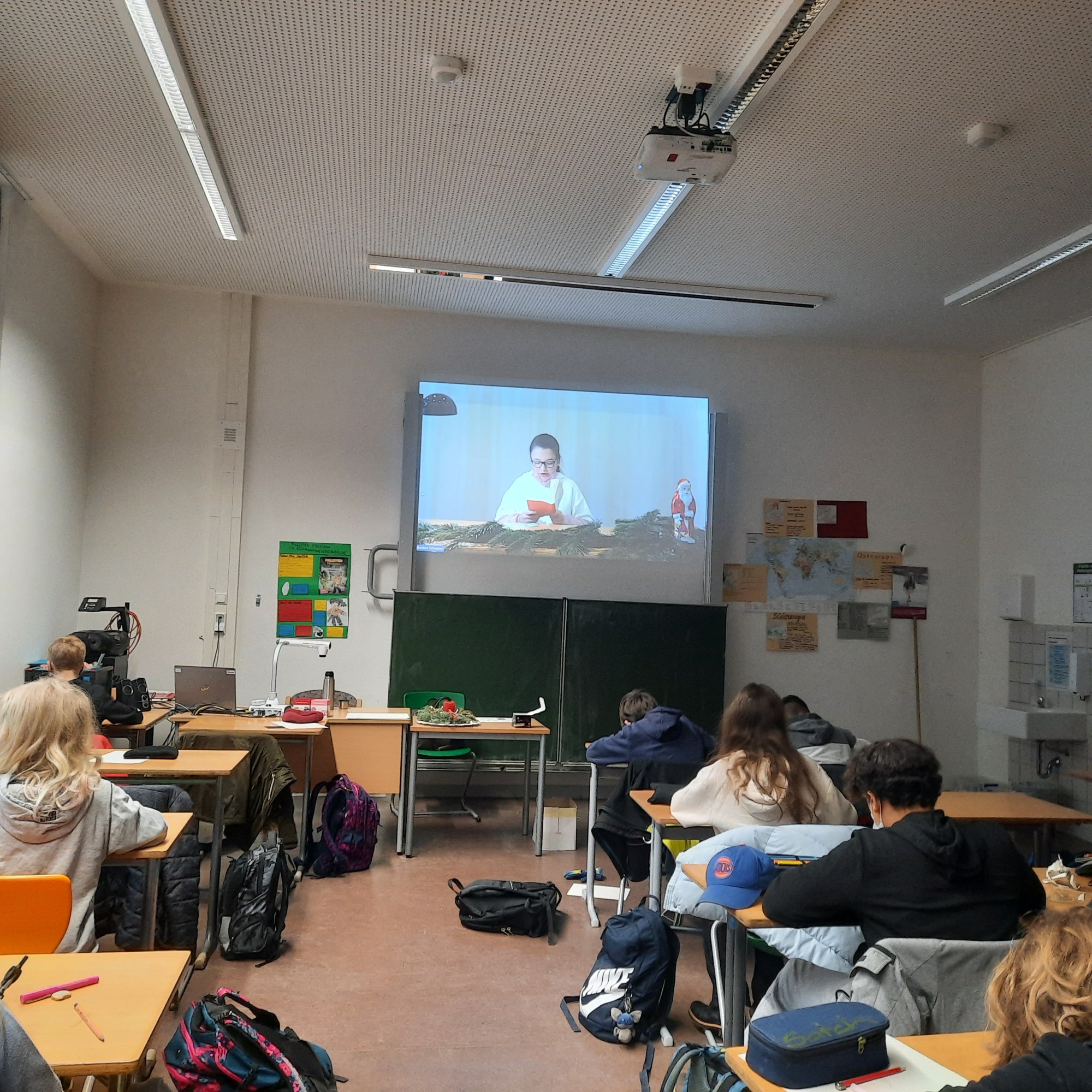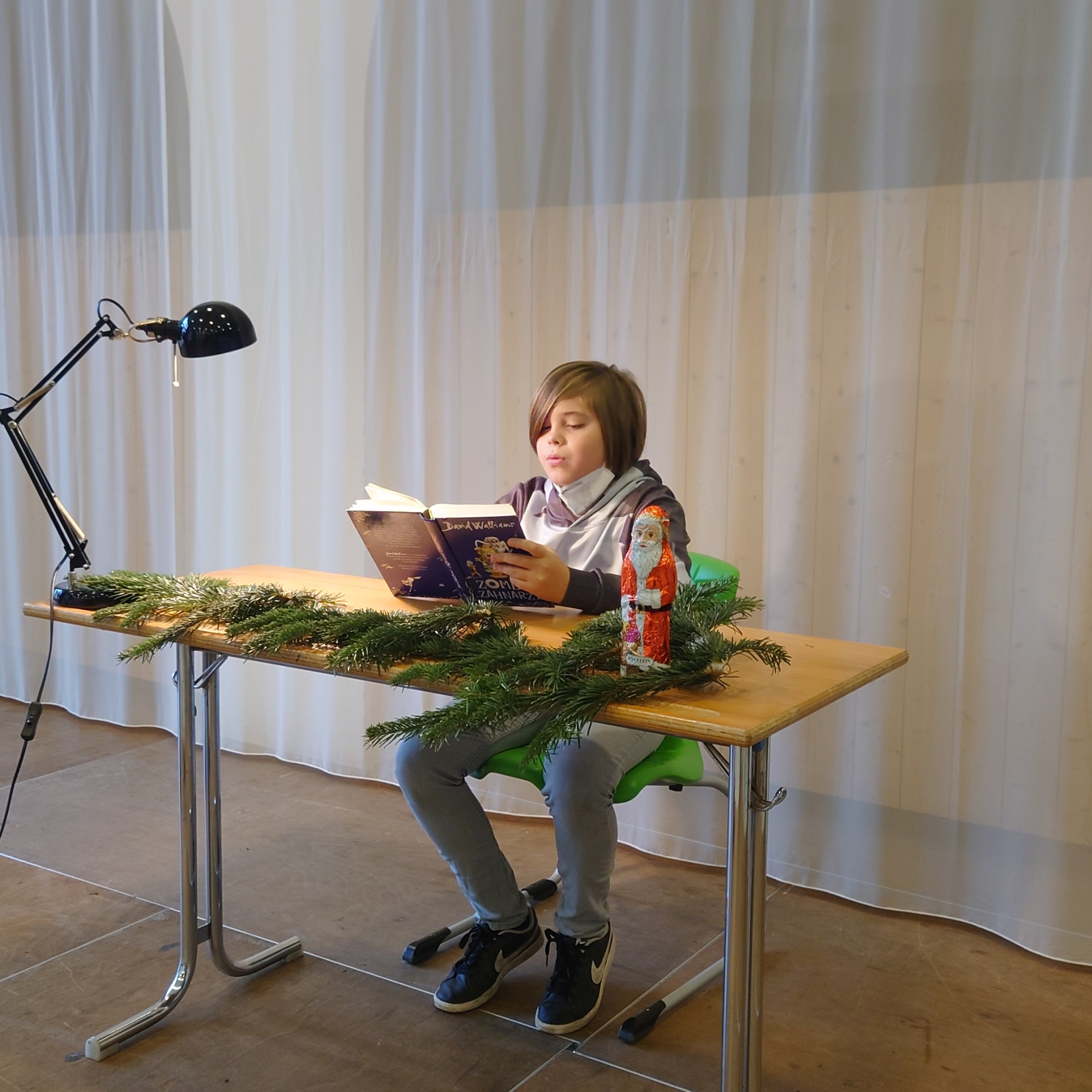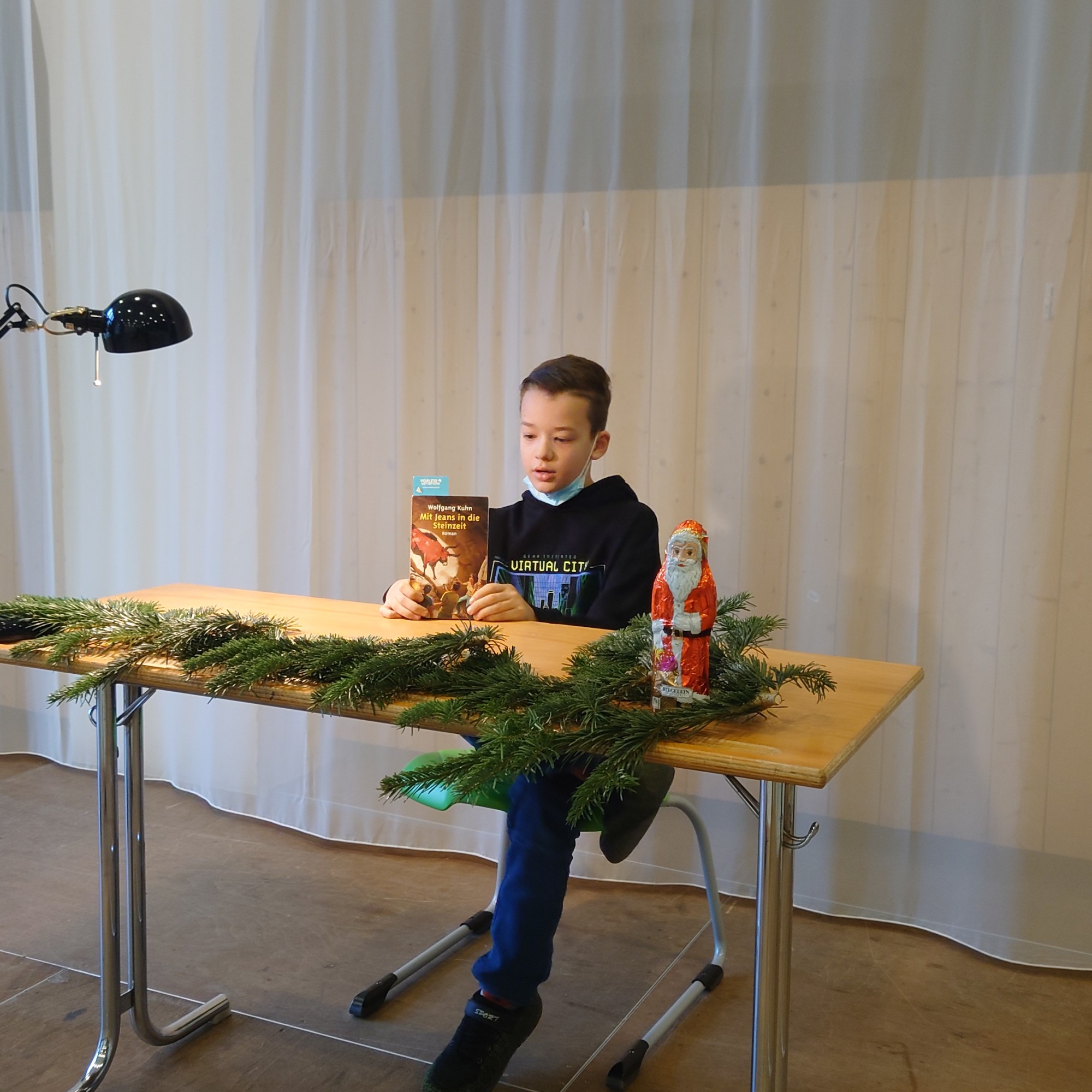 Das Besondere in diesem Jahr bestand in der Online-Übertragung der Lesung aus der Aula in die Klassenzimmer, da sich nicht zu viele Schüler in der Aula aufhalten durften. Für die VorleserInnen war das ganz schön aufregend.