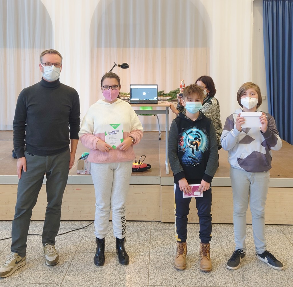 Ein herzliches Dankeschön geht an Frau Kindig für die Moderation und Organisation, Frau Matzeder und Herrn Schuster für die Bereitstellung der Technik für die Live-Übertragung und den Elternbeirat für die Büchergutscheine, die die Preisträger erhielten.