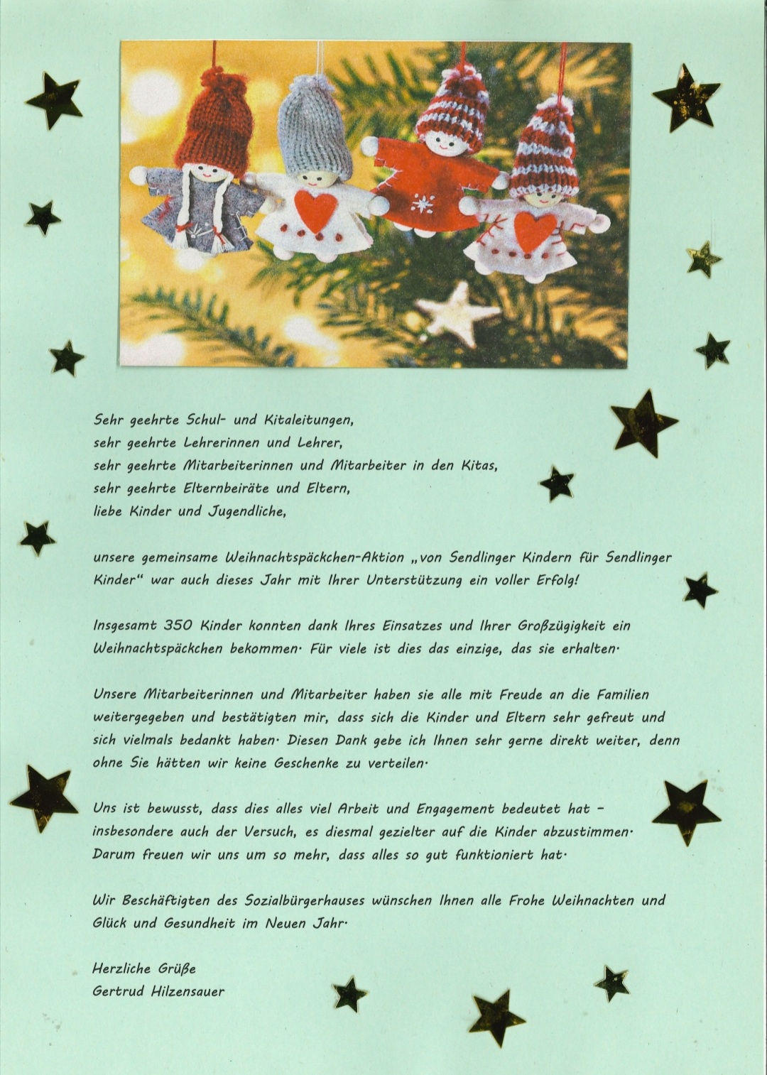Wir möchten allen Schenkenden von ganzem dafür danken und ein frohes und besinnliches Weihnachtsfest wünschen.