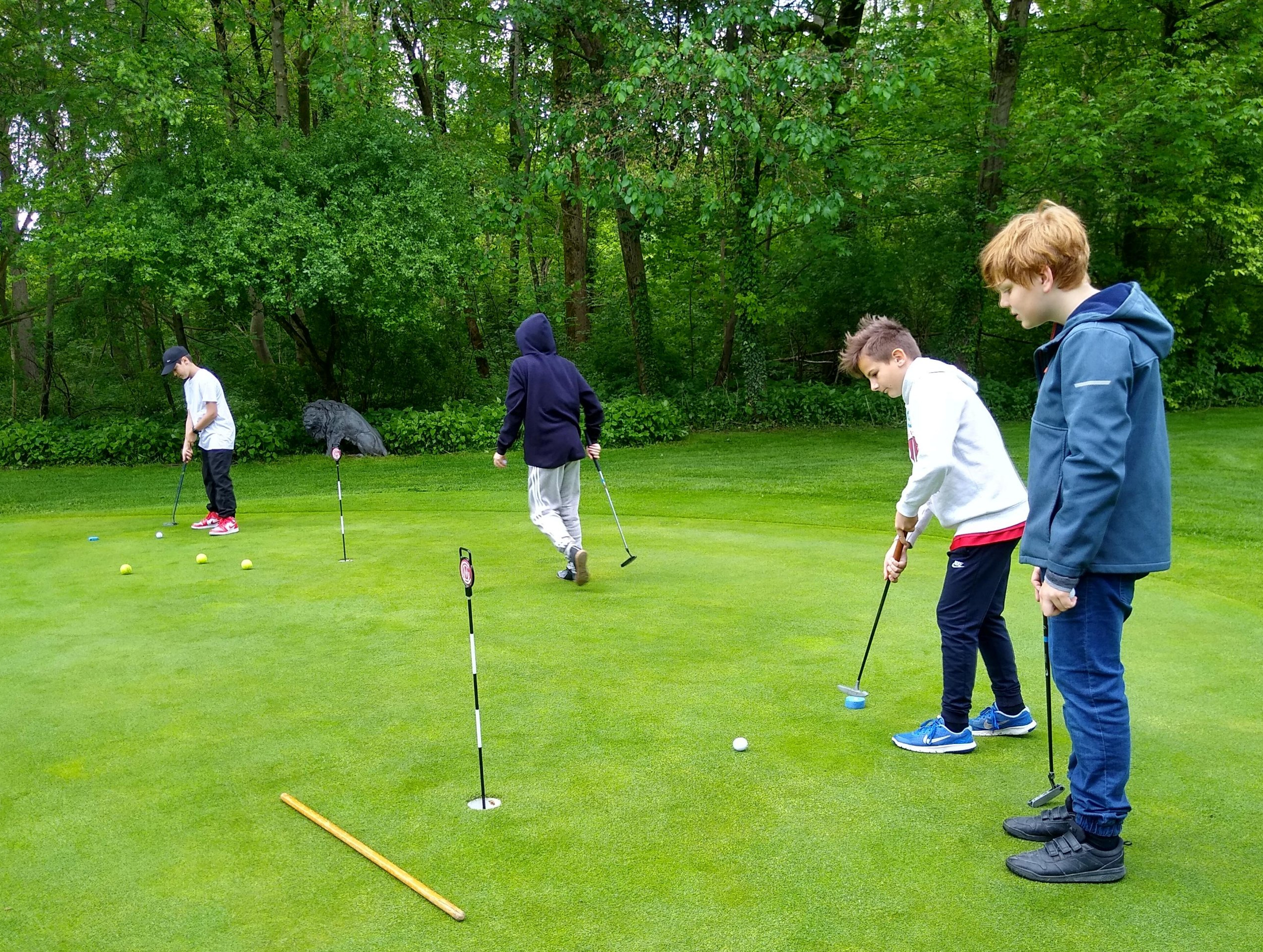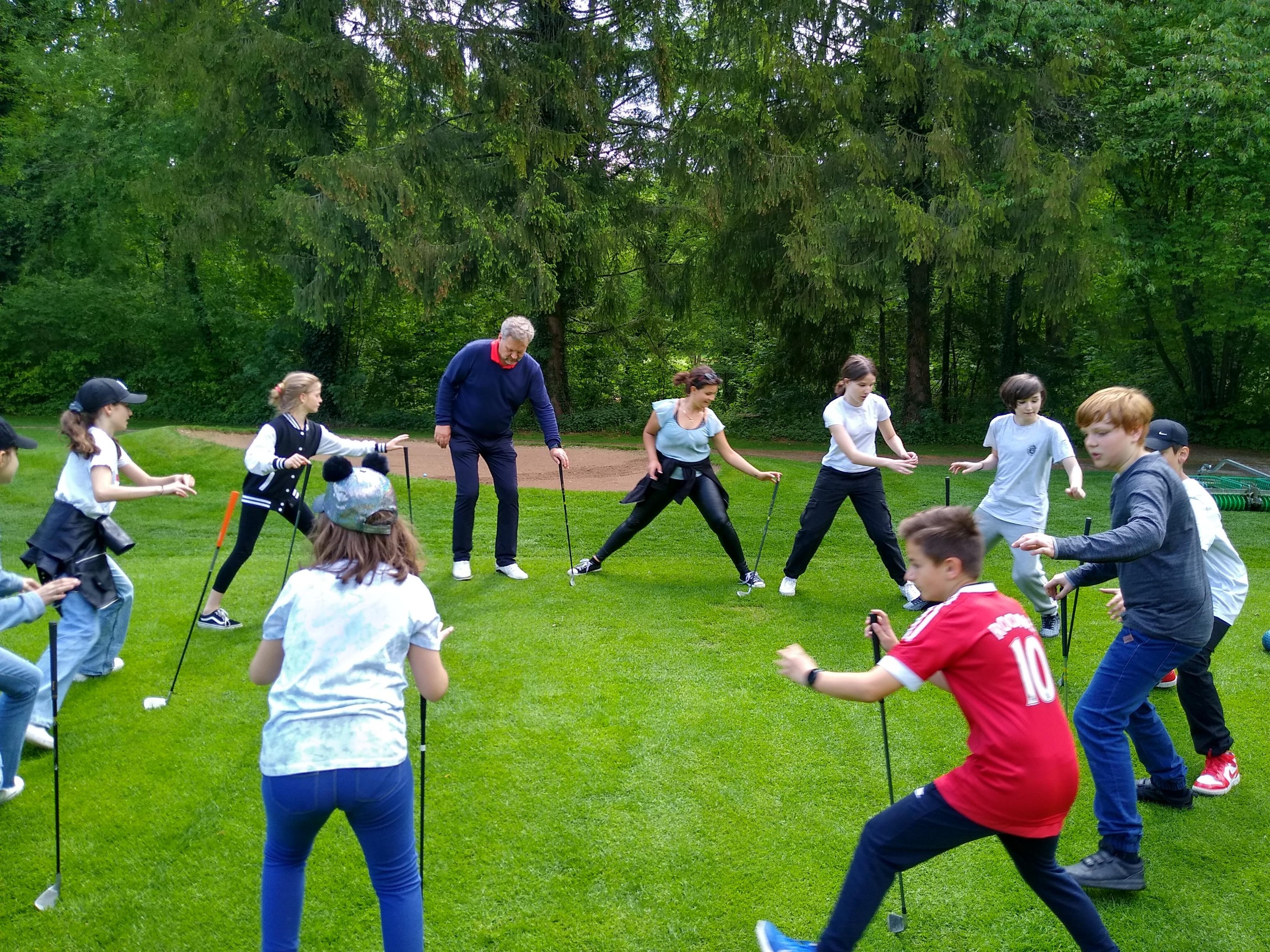 Herr Mayerl und zwei andere Trainer des nahegelegenen Golfclubs der Stadt München übten mit den Mädchen und Jungen CHIPPEN – PITCHEN – PUTTEN. Diese Golftechniken wurden an drei Stationen geübt.