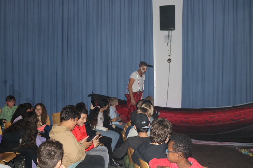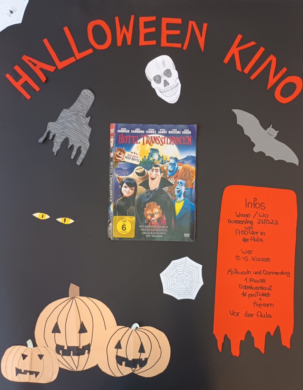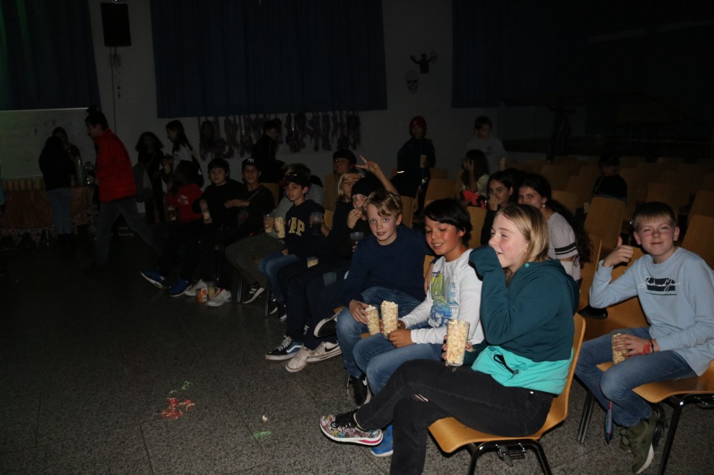 Zur Einstimmung auf Halloween fand am Donnerstag vor den Herbstferien das erste Halloween Kino an der Maria-Probst-Realschule statt. Bei Popcorn und Softgetränken konnten sich die Fünft- und Sechstklässler:innen den Film „Hotel Transilvanien“ anschauen.