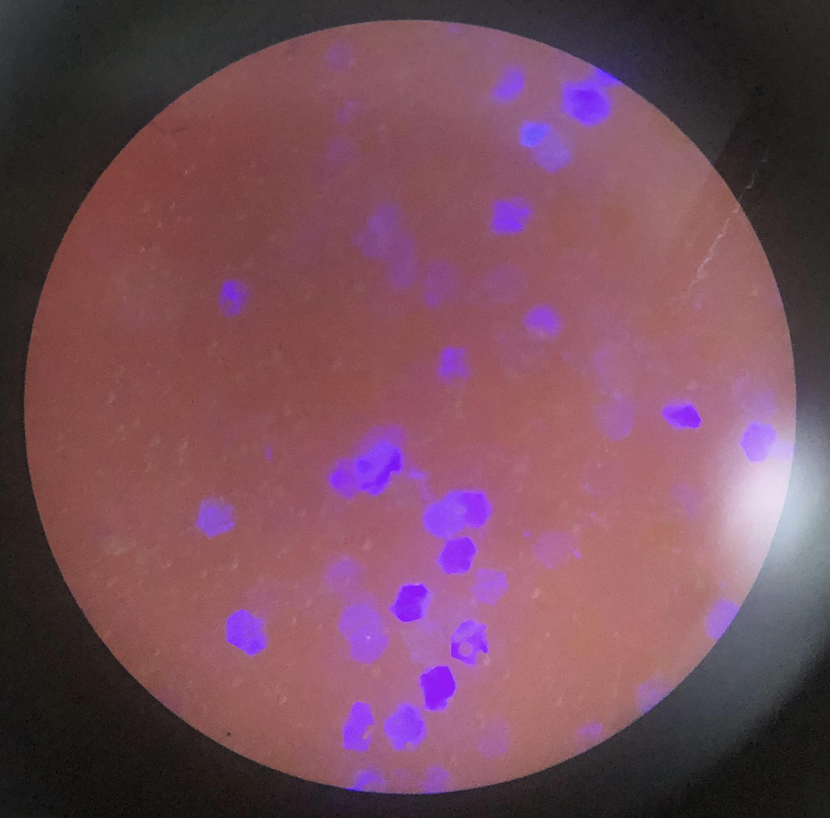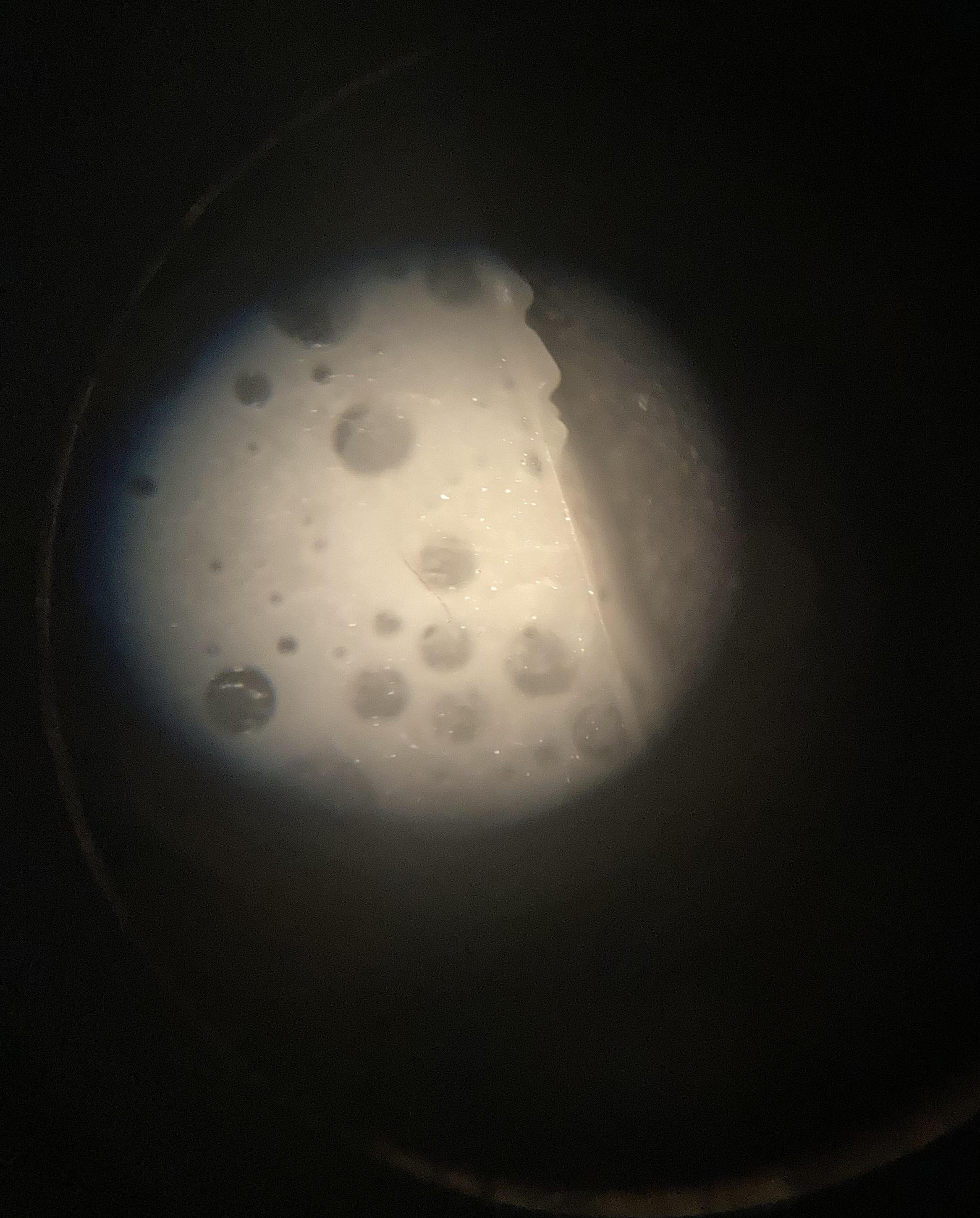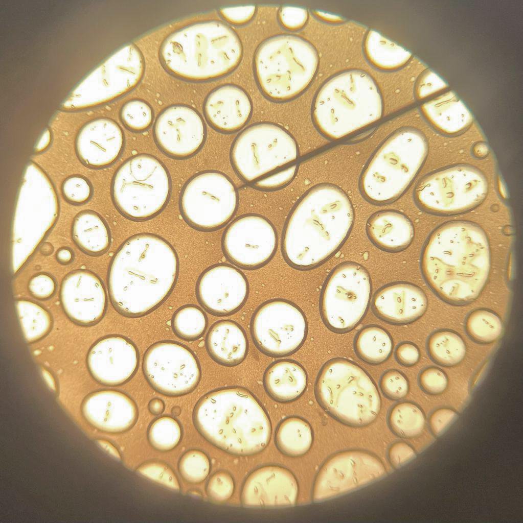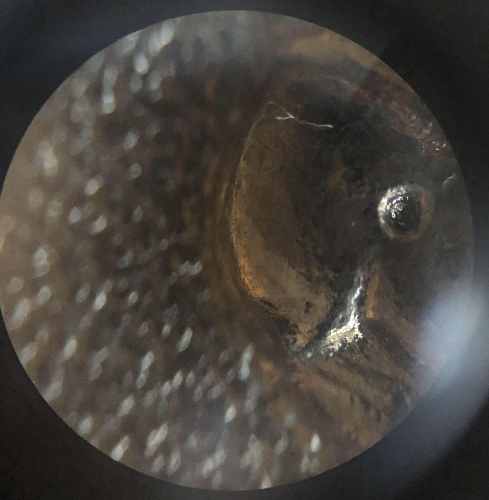 Die Präparate wurden teils mit Aufstecklinsen für Handy fotografiert. Dabei sind „Mikro- und Makrofotos“ entstanden, die ausschauen als wären es Aufnahmen von einem anderen lebensfeindlichen Planeten. Sehr selbst, ob ihr erkennt, was hier unter dem Mikroskop lag.
