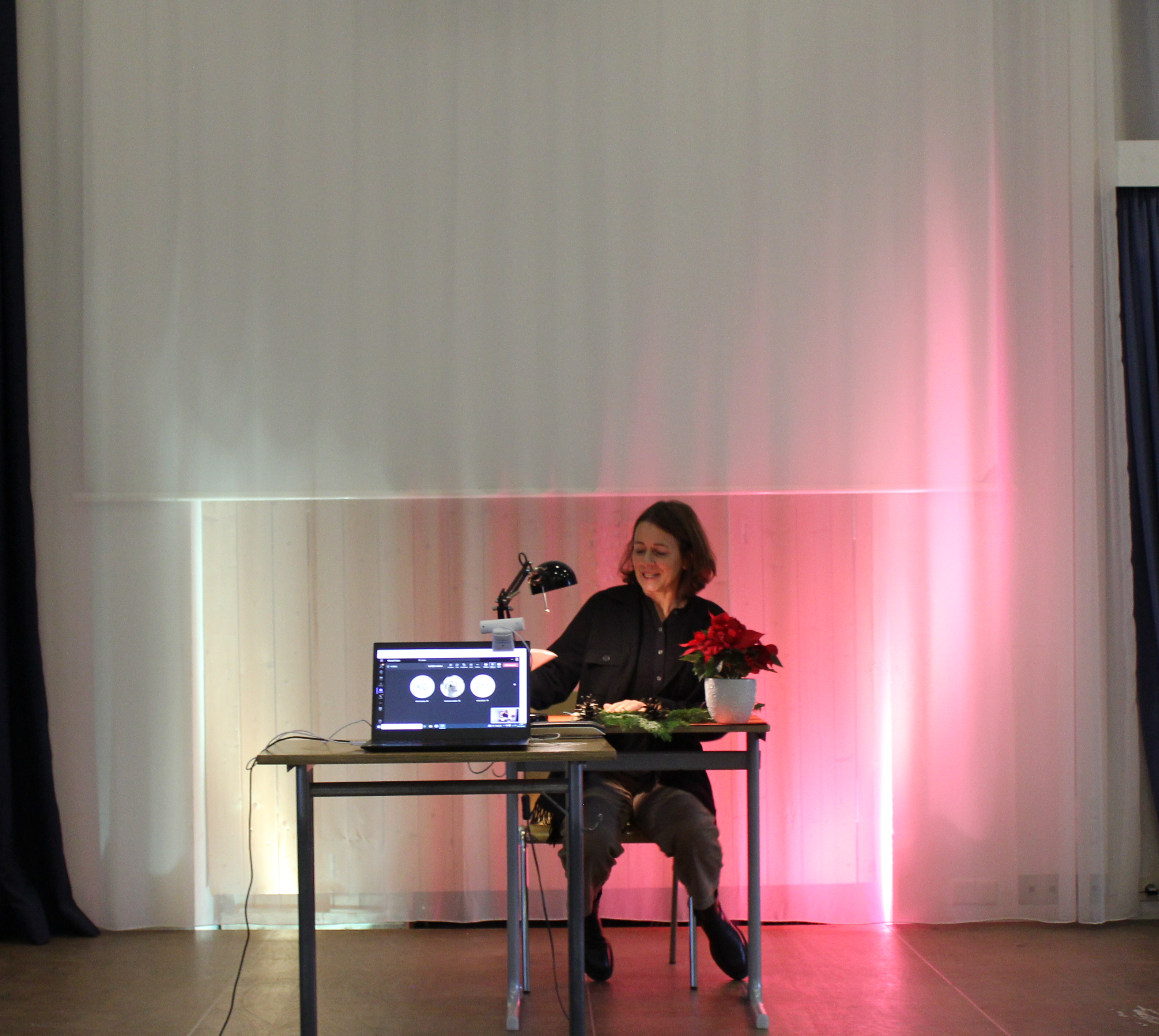 Frau Kindig führte durch den Wettbewerb, der per Teams in die Klassenzimmer übertragen wurde. Dort fieberten die Zuhörinnen* mit ihren Kandidatinnen*.