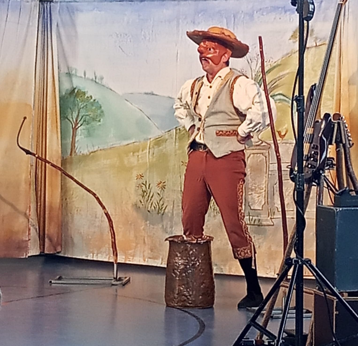 Das dänische Volksmärchen „Der faule Lars“ wurde von Stefan Knoll als Einpersonenstück aufgeführt. Er konnte die Kinder aus einer Kombination aus Masken- und Musiktheater in seinen Bann ziehen.