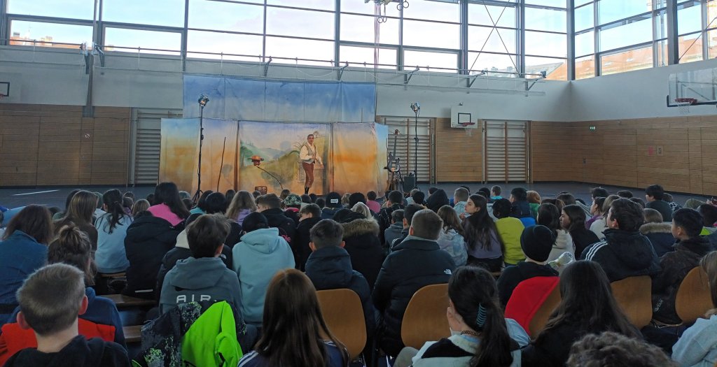 Am Dienstag, dem 07. März 2023 konnten auf Initiative von Frau Elsner und Frau Fontaine die 5. und 6. Klassen eine Theateraufführung in der Turnhalle miterleben.