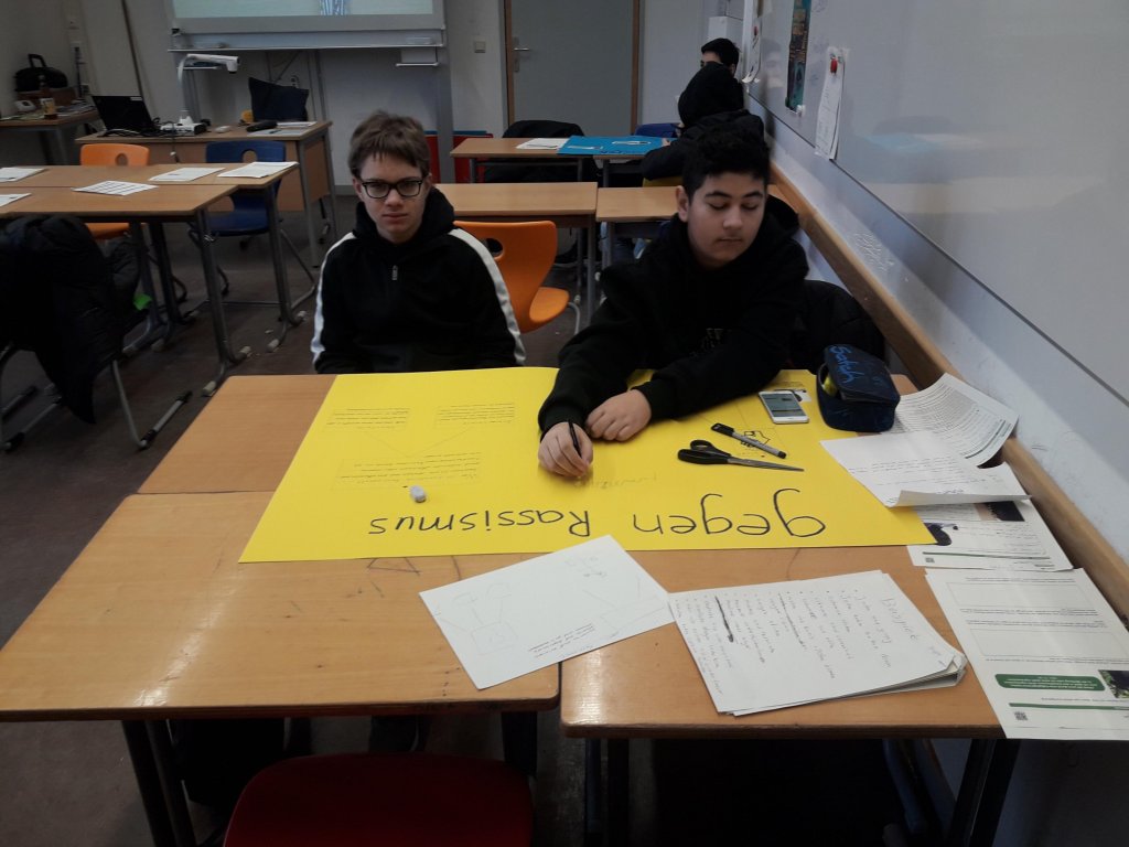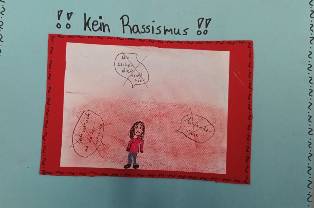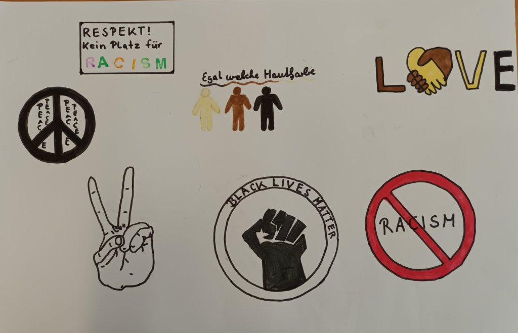 Mehrere Gruppen beschäftigten sich auch mit dem Thema des Alltagsrassismus und wie man ihm begegnen kann. Dabei konnten sich die Schülerinnen und Schüler sich über Vorurteile, mit denen sie vielleicht persönlich konfrontiert werden, austauschen und überlegen, welche Ursachen es dafür gibt. Dabei haben sie auch Strategien entwickelt, wie man sich gegenseitig in solchen Situationen unterstützen kann.