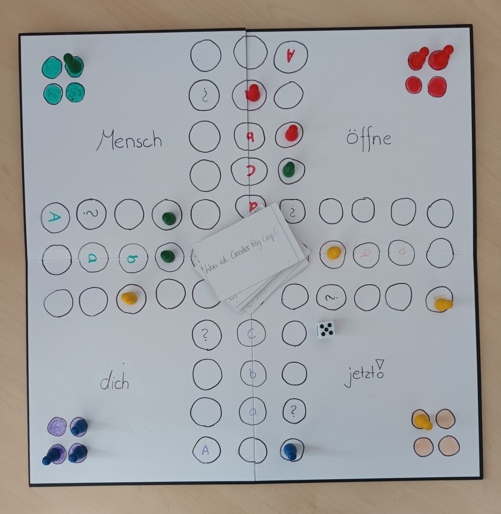 Drei Gruppen sind die Thematik spielerisch angegangen, haben bestehende Spiele wie „Monopoly“, „Flaggenmemory“, „Mensch „öffne“ (ärgere) dich (nicht)“ oder „Das Glücksrad“ überarbeitet oder auch das Spiel „Schwarzer Peter“ unter die Lupe genommen.