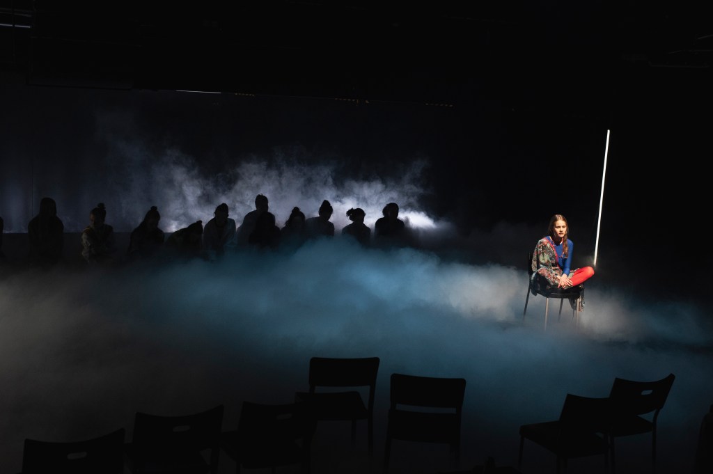 Das erste Stück, das am 8. Februar besucht wurde, war „Ist mein Mikro an?“ im Marstall im Residenztheater. Das Stück handelte von der digitalen Kommunikation in unserer heutigen Gesellschaft und bot eine innovative und dynamische Inszenierung. In der ersten Reihe sitzend waren wir als Besucher begeistert von der modernen Interpretation und der kritischen Haltung gegenüber der heutigen Technologieabhängigkeit, auch wenn sich über die Radikalität einiger geäußerter Auffassungen sicher streiten ließe. Das junge Ensemble, bestehend aus Schülerinnen*, konnte auf wunderbare Weise überzeugen.
