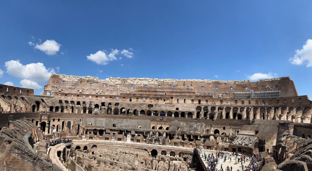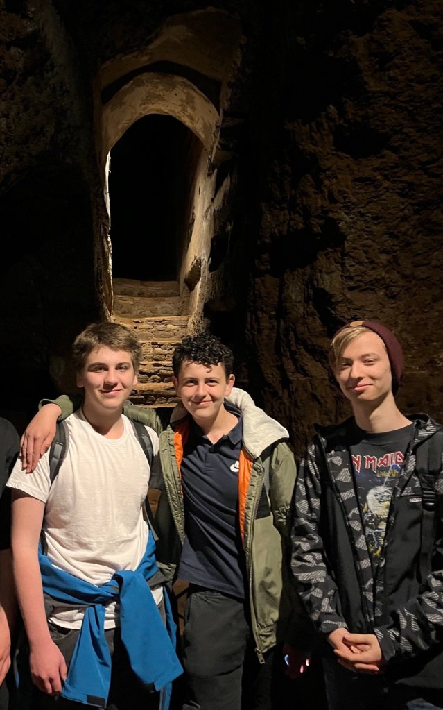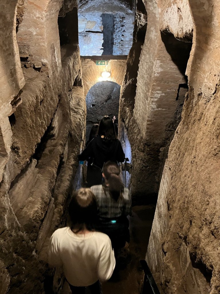 Rom ist riesig. Aber am Donnerstag traf die Klasse 10b spontan bei der Führung durch die Katakomben auf die Klasse 10a. Vorab am Mittwoch wurde das berühmteste Gebäude Roms, das Kolosseum mit seiner imposanten Größe besucht. Unvorstellbar, dass hier tausende Menschen wie heute in der Allianzarena sportlichen Wettkämpfen und Theaterveranstaltungen auf damals höchsten technischen Knowhow – wenn auch manchmal sehr gewalttätig – erleben konnten. Auch Rom am Abend kann an der Spanischen Treppe durchaus romantisch sein.