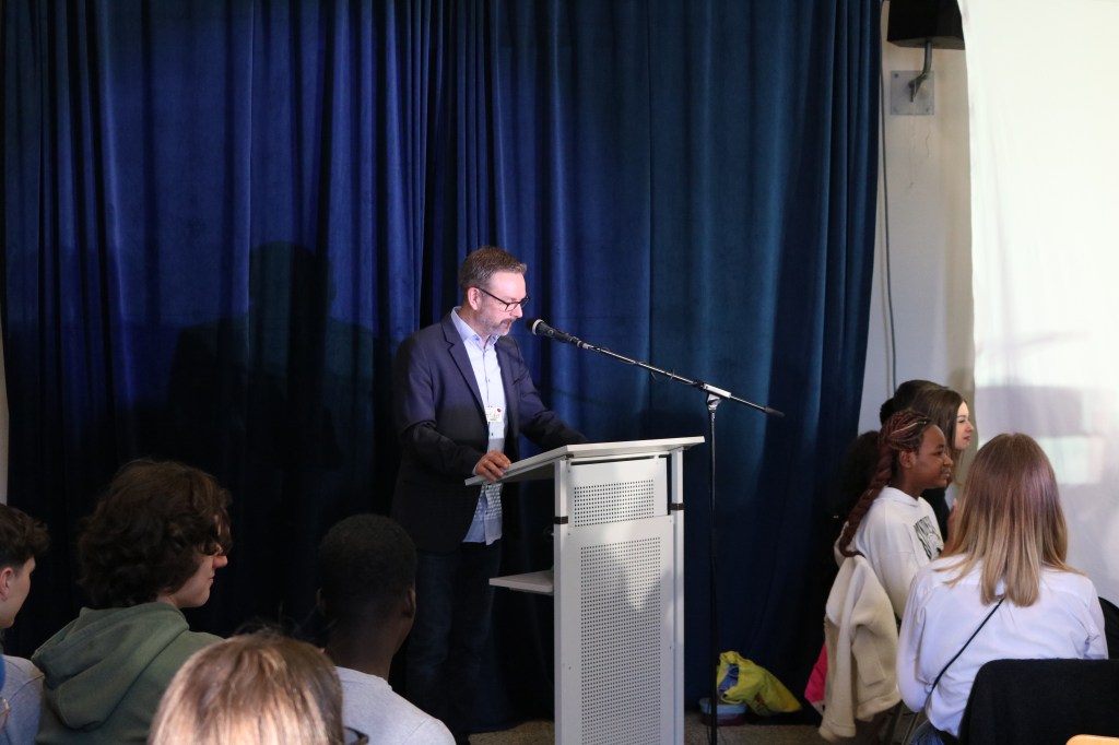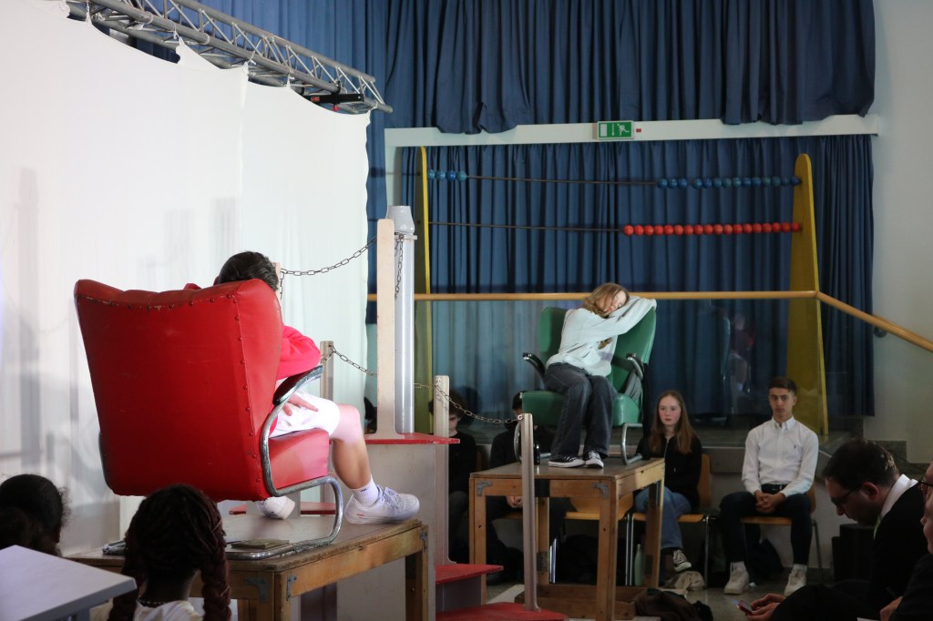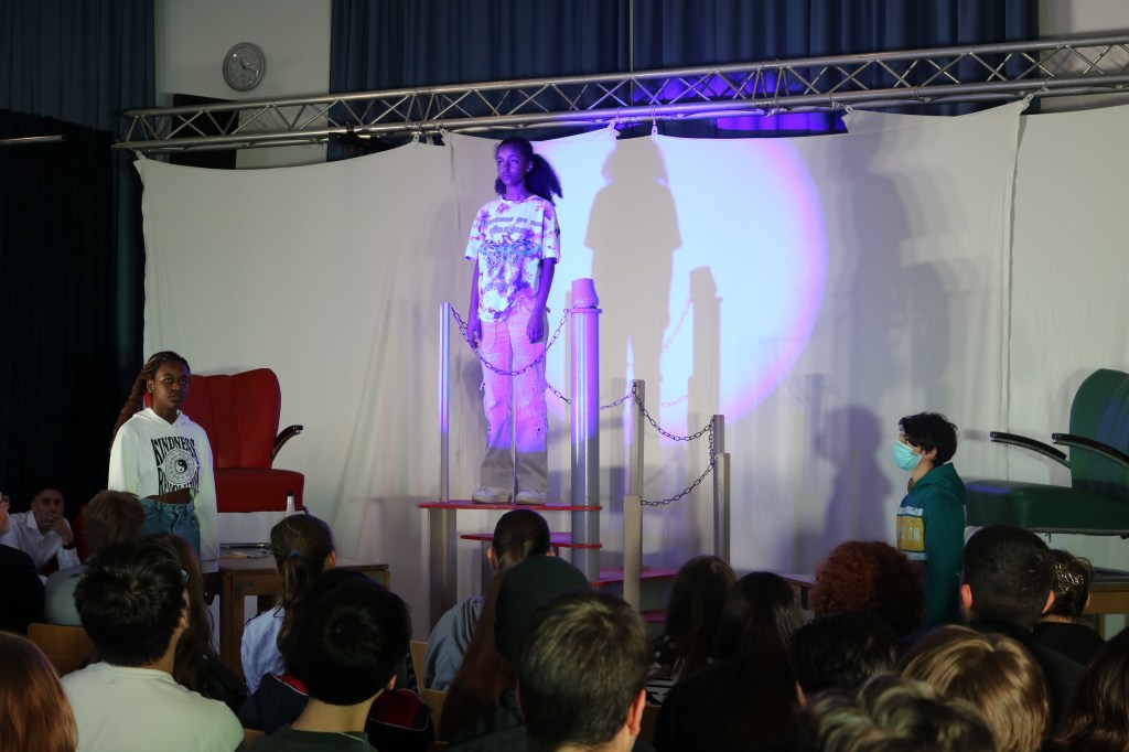 In der Woche vom 1. bis zum 5. Mai 2023 fand an unserer Schule ein Theaterprojekt mit Schülerinnen* aus den 8. und 9. Klassen statt. Die Teilnehmer*innen kamen sogar am Feiertag in die Schule, um mit dem Projekt beginnen zu können. Sie konnten sich freiwillig im Vorfeld bei einem Casting anmelden und haben gemeinsam mit dem Projektleiter und Schauspieler Jean Francois Drozak ein interaktivesTheaterstück entwickelt.
