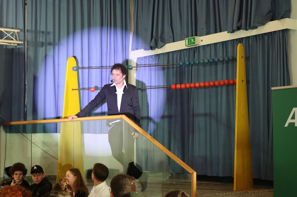 Am 5. Mai gab es dann zwei offizielle Vorführungen für die 8. und 9. Klassen. Da das Theaterprojekt in diesem Schuljahr von Herrn Drozak an 23 bayerischen Schulen durchgeführt und mit Unterstützung der AOK, des Gesundheitsministeriums und des Ministeriums für Kultur, Bildung und Sport unterstützt wird, nahmen Vertreter dieser Einrichtungen daran teil.
