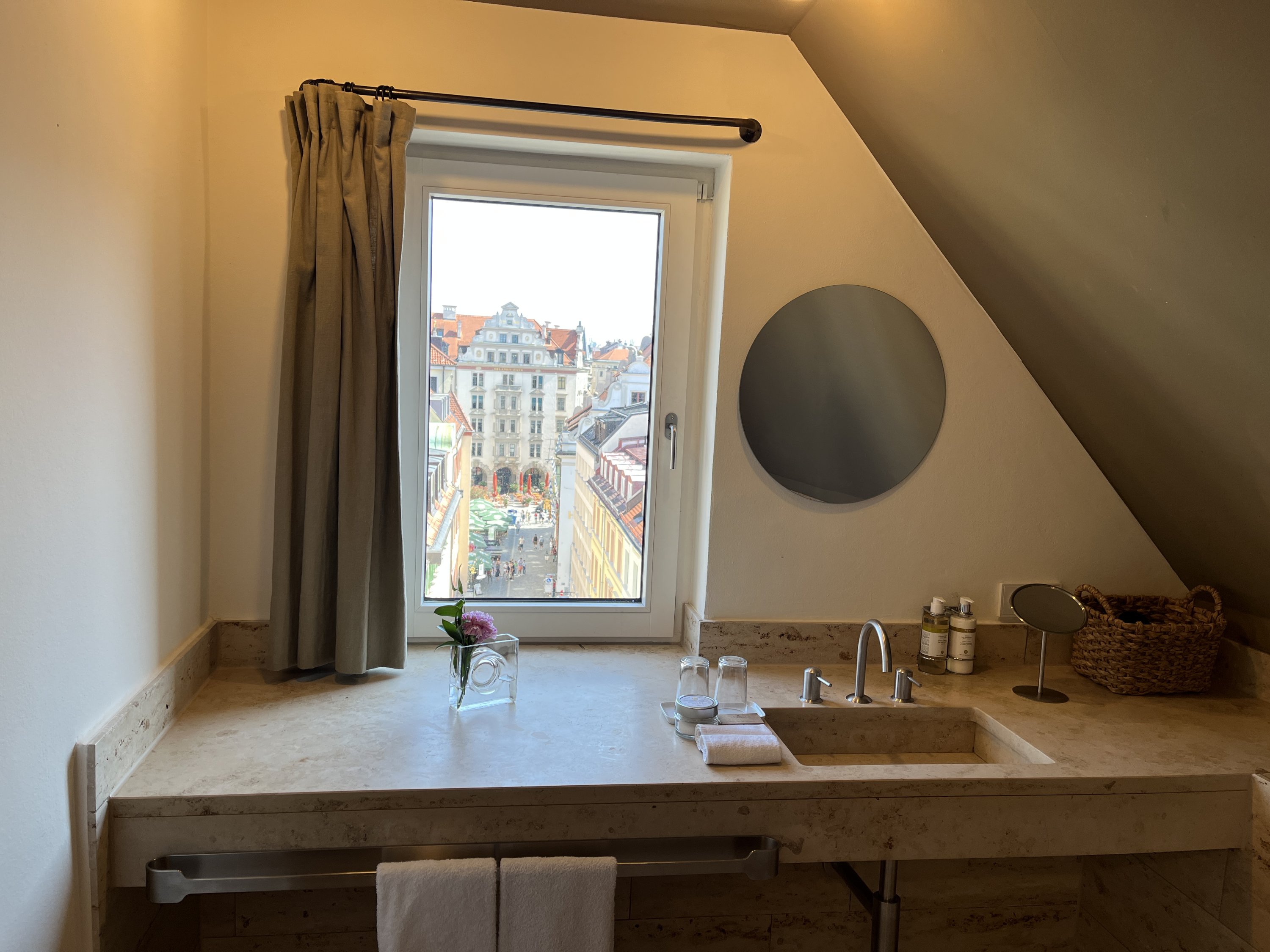 Danach ging es direkt gegenüber auf die andere Straßenseite in das Boutique-Hotel Cortiina. Dort durften wir uns neben einer Cortiina Suite auch das Herzstück, die Cortiina Maisonette Suite, anschauen. Auf zwei Etagen mit zwei privaten Balkonen zum Verweilen und direktem Blick auf’s Platzl vom Badezimmer aus, kann man es sich dort mehr als gut gehen lassen.
