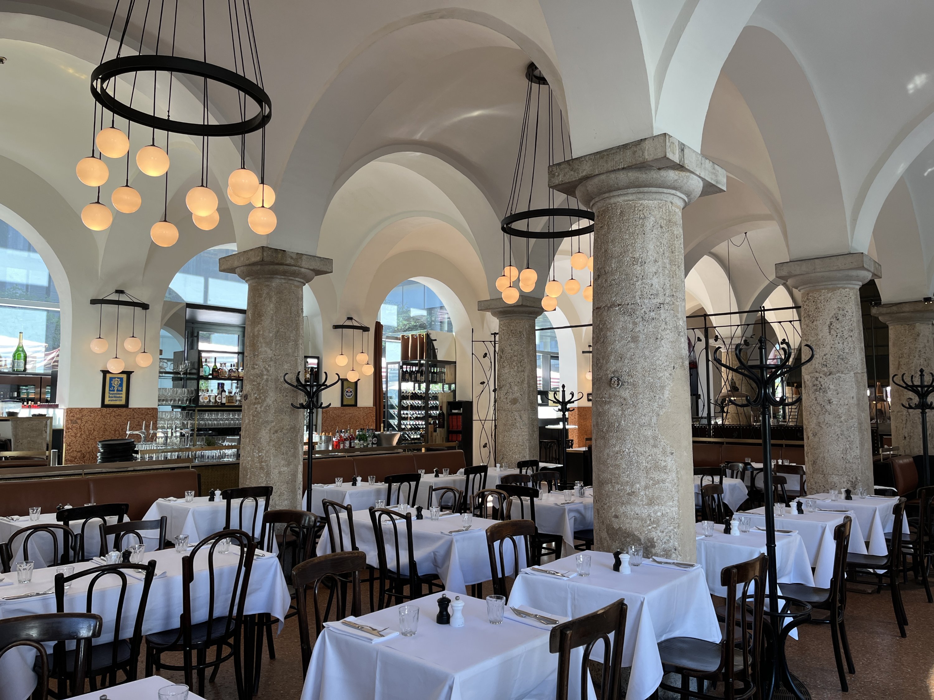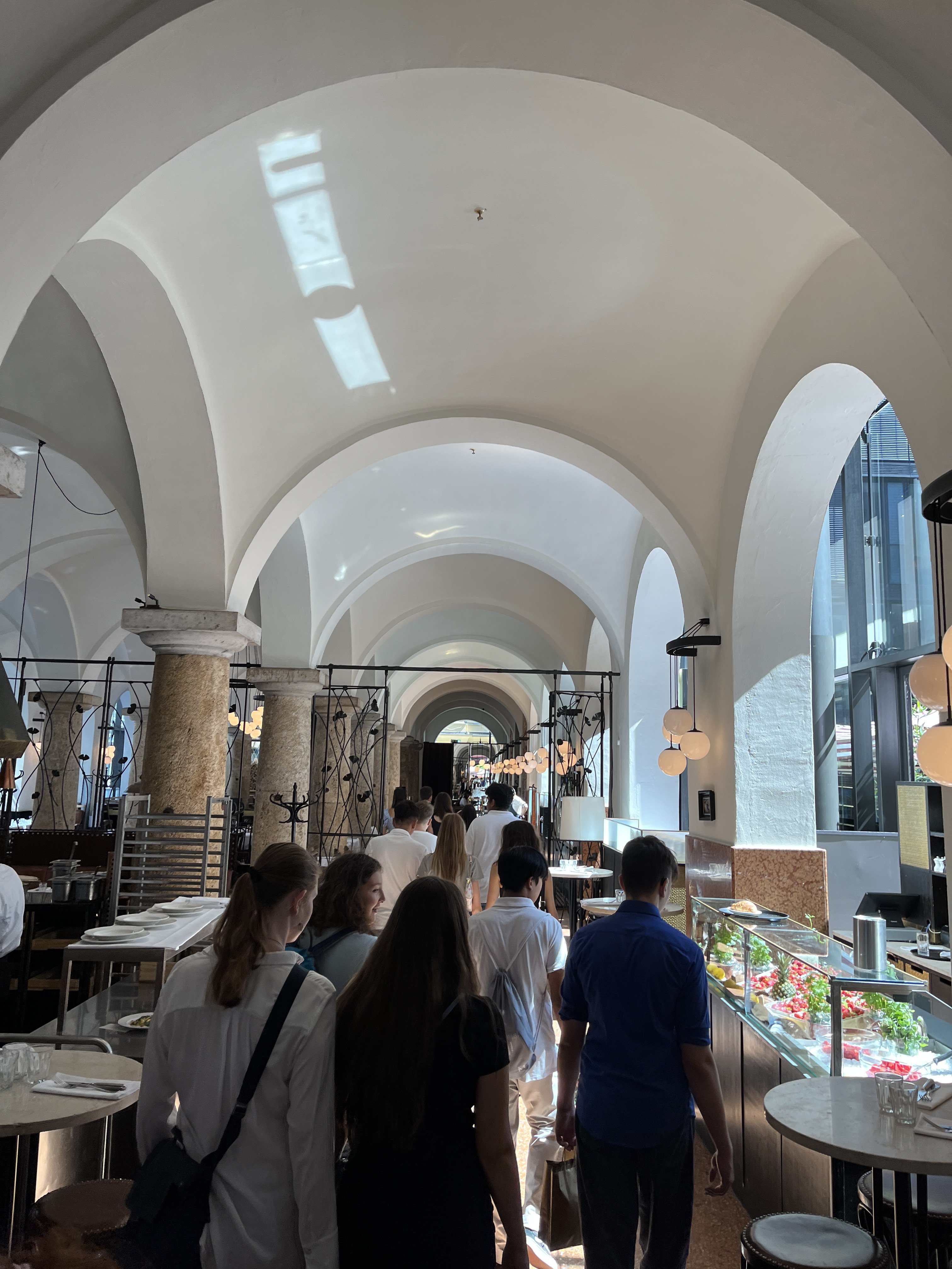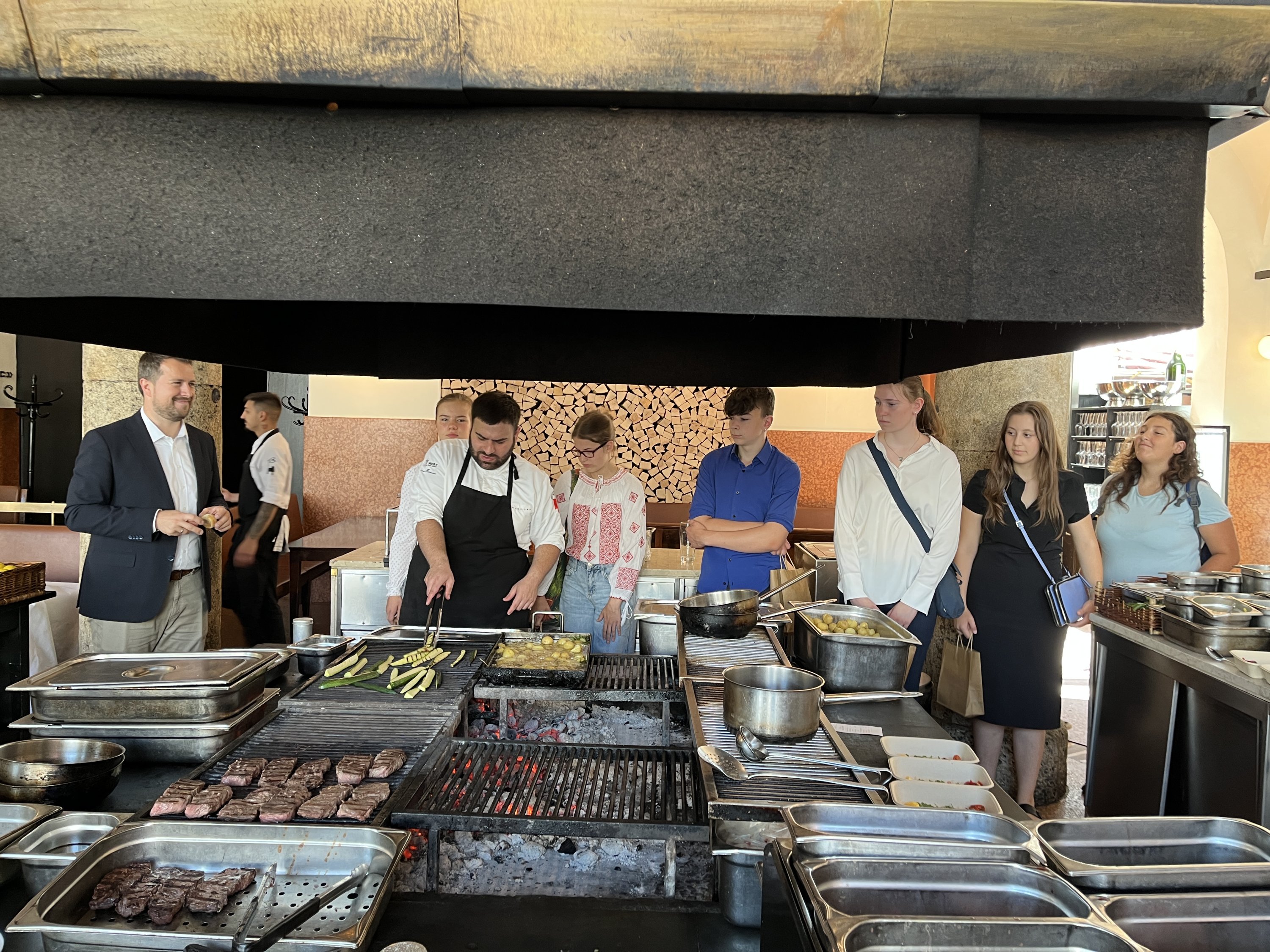 Zum Abschluss durften wir noch im „Brenner“ in der denkmalgeschützten Säulenhalle des Marstalls den Opengrills, die offenen Kochstellen sowie die Hauptküche bewundern. Auch hier wurden wir erneut kulinarisch verwöhnt und durften von den selbstgebackenen Brötchen naschen.