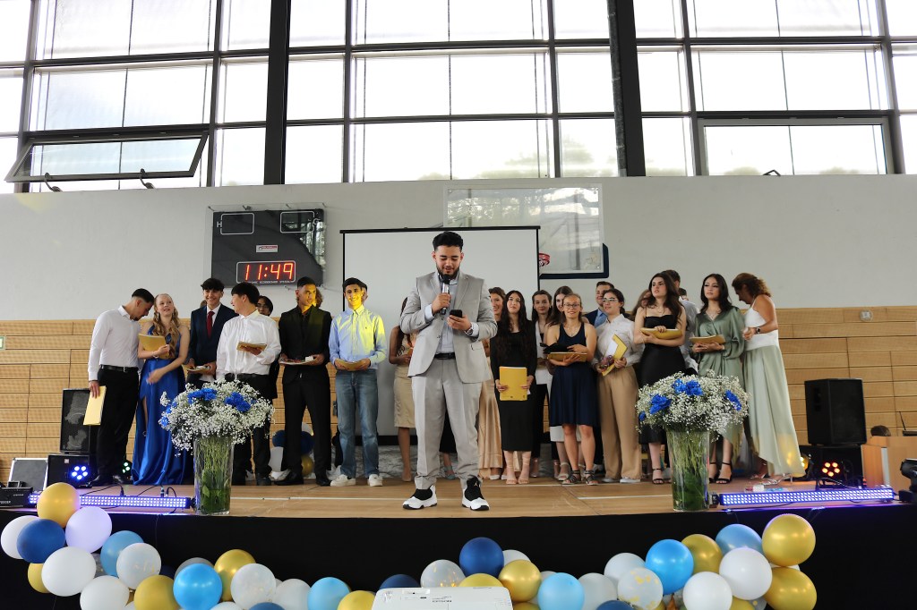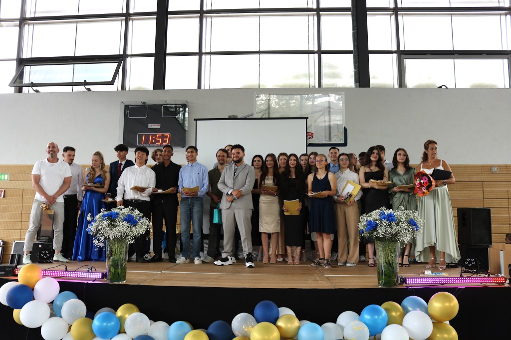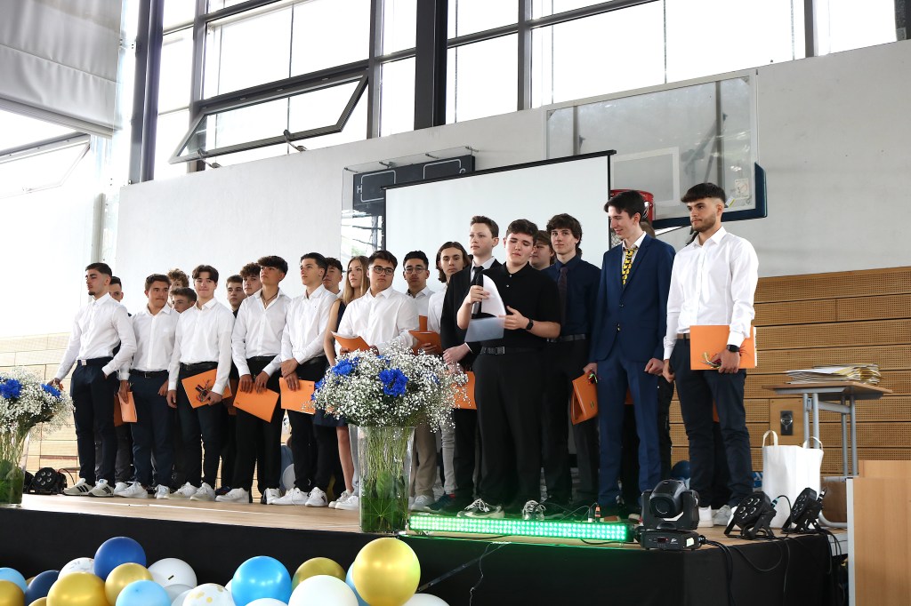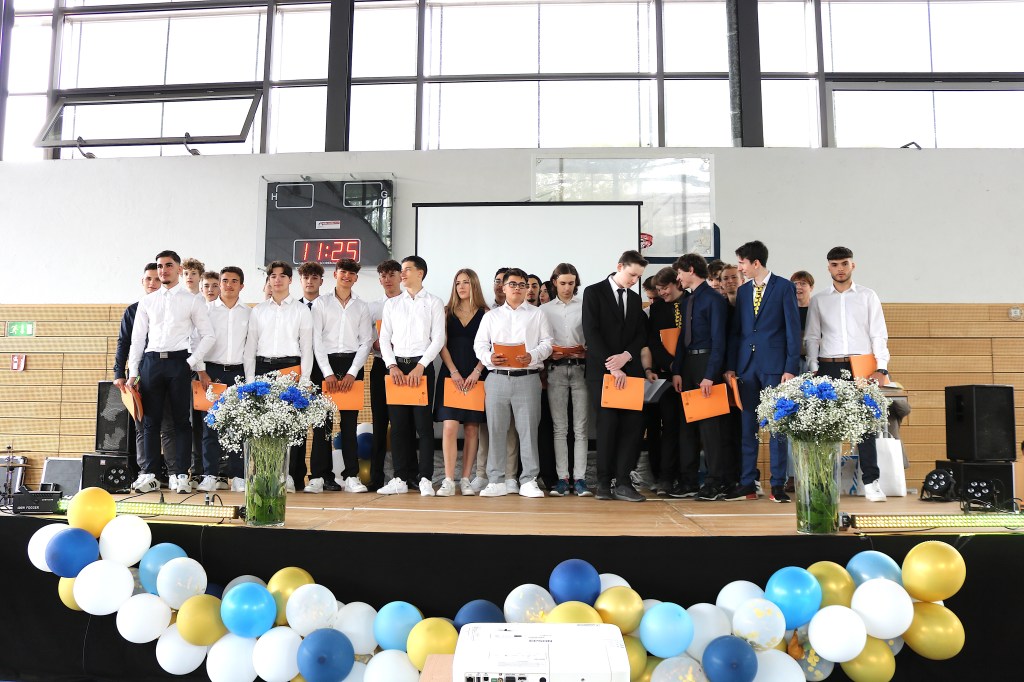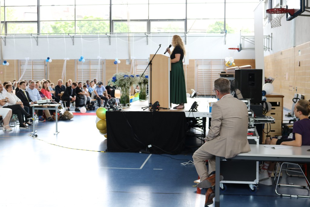 Unser Schulleiter Herr Koller, die Vertreterin des Elternbeirates Frau Lo Giudici, die Klassenleitungen und Klassensprecher gedachten in ihren Reden neben den Herausforderungen der vergangenen Schuljahre auch den heiteren und bewegenden Momenten. Die besten Schüler*innen des Jahrgangs wurden durch den Elternbeirat geehrt.
