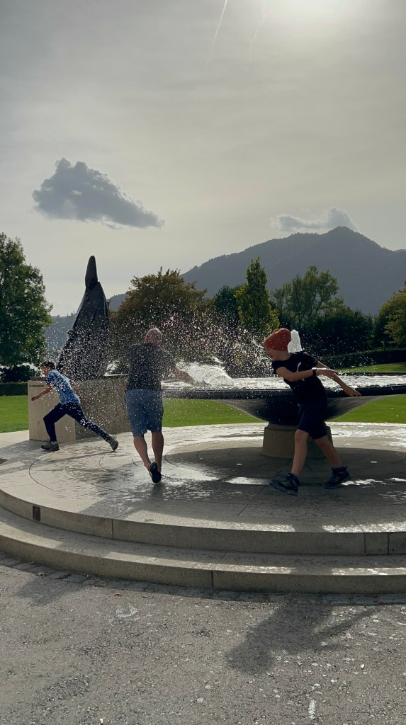 Eine kleine Wasserschlacht zeigt die ausgelassene Stimmung am Ende des erstes Ausflugstages der Outdoor`ler.