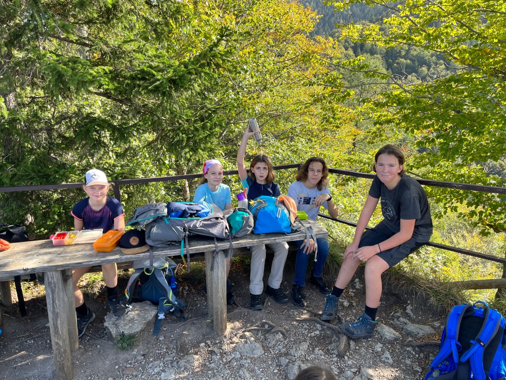 Dieser Jahrhundertherbst, der sich anfühlt wie ein nicht enden wollender Sommer, lud die Outdoor-AG mit Herrn Fürst und Frau Maurer heute, dem 10. Oktober 2023 zu einer Wanderung auf den Riederstein (1207 m) ein.