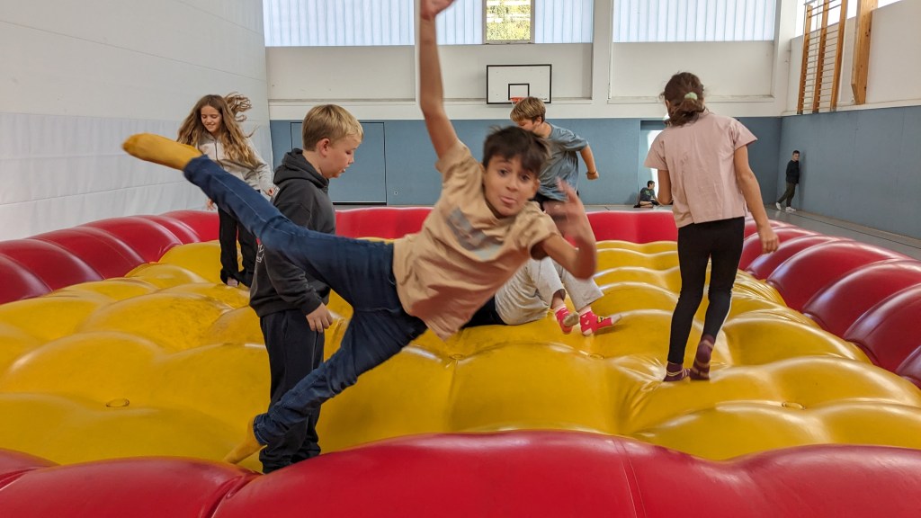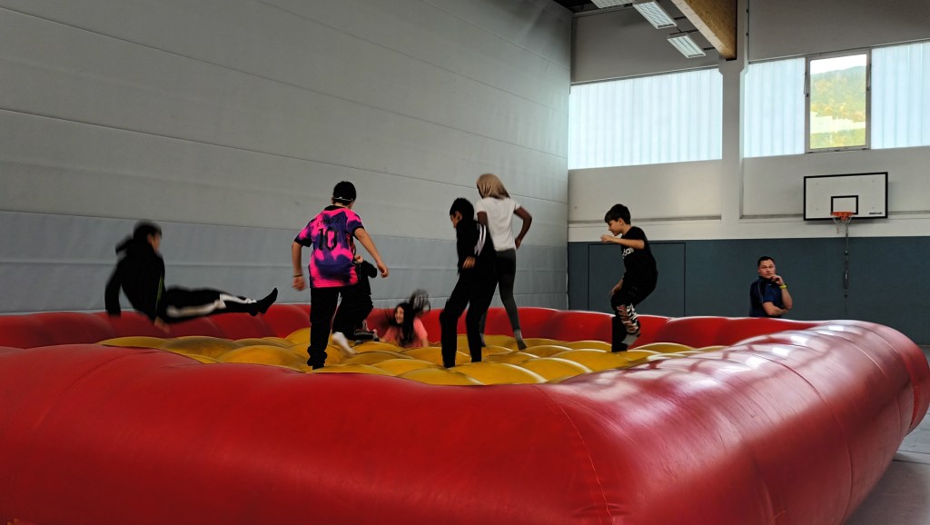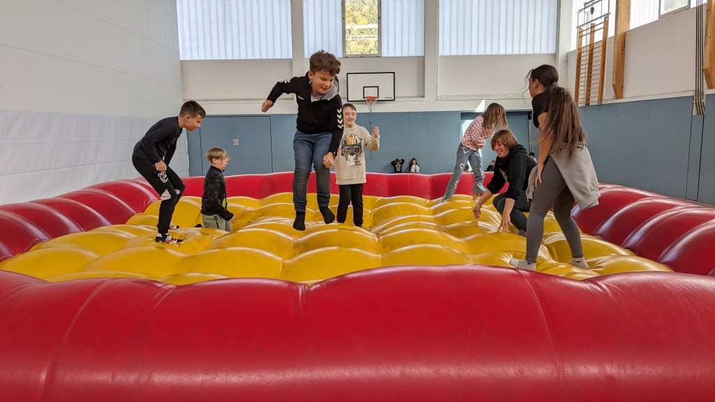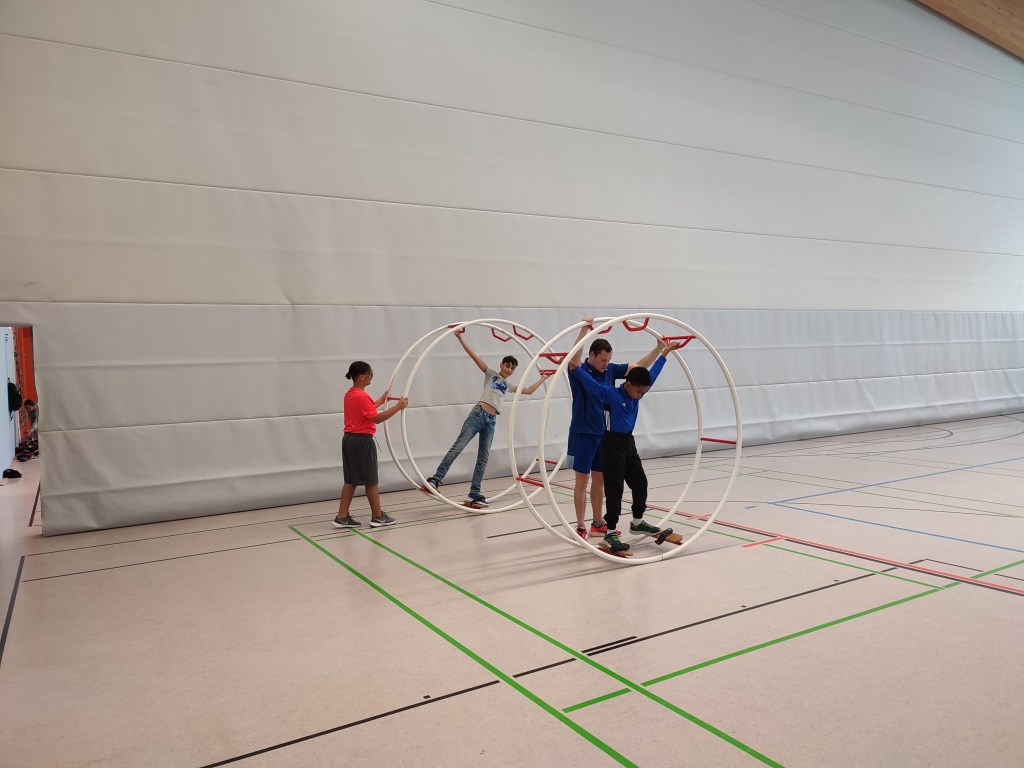 Bei dem umfangreichen Sportprogramm (Rhönrad, Biathlon, Klettern, Soccer-Golf, Air-Tramp) und während des Aufenthaltes im Camp ging es neben dem Spaß an der Bewegung natürlich darum, sich untereinander kennen zu lernen, Freundschaften zu schließen und zu erleben, zu wem man Vertrauen aufbauen kann.