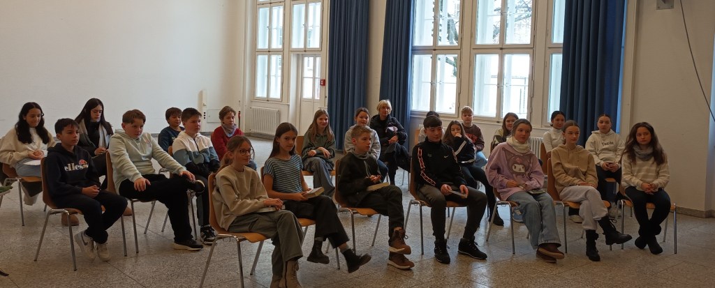 Beim Vorlesewettbewerb am 06.12.2023 an der MPR wurde der beste Leser in der 6. Klassenstufe der Schule ermittelt. Mit großer Freude und auch ein wenig Nervosität gingen die Teilnehmern in diesen Ausscheid. Die Veranstaltung mit den sieben Klassensiegern (Imran Plojovic, Sophie Thiekötter, Nino Nassiopoulou, Jana Bröckl, Mattis Hein, Viktoria Speldrich, Dzejla Mahmutovic) wurde live in die Klassenzimmer für die anderen Schüler übertragen. Der Wettbewerb wurde in der Aula vor Freunden der Vorleser durchgeführt und von Frau Kindig moderiert, was eine ruhige und konzentrierte Atmosphäre schuf.