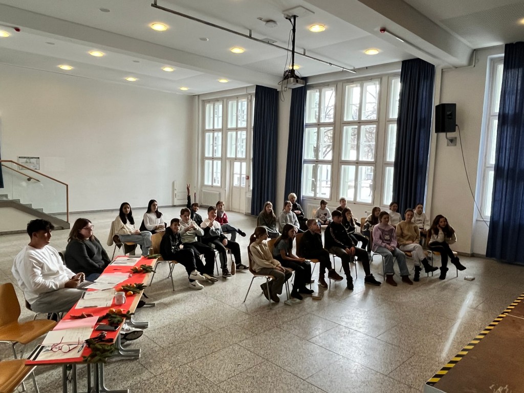 Die Jury bestand aus einem Vertreter der Deutschfachschaft , der Schulleitung, des Elternbereites und einem Schüler der SMV. Sie bewerteten die Vorleser nach Kriterien wie Lesefluss, Betonung, Aussprache und Interpretation des Textes. Es war toll zu erleben, wie die Schülerinnen und Schüler sich bemühten, ihren Text lebendig und ausdrucksstark zu gestalten.