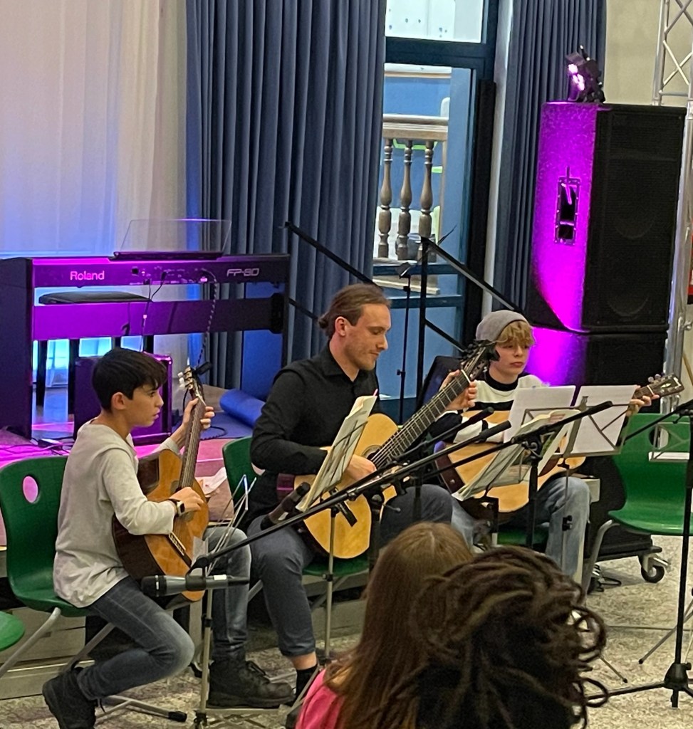 Sowohl auf der Gitarre, dem Schlagzeug, der Trompete oder dem Klavier konnten sich die Ergebnisse der Übungsstunden hören lassen und erfreuten bzw. begeisterten das Publikum.
