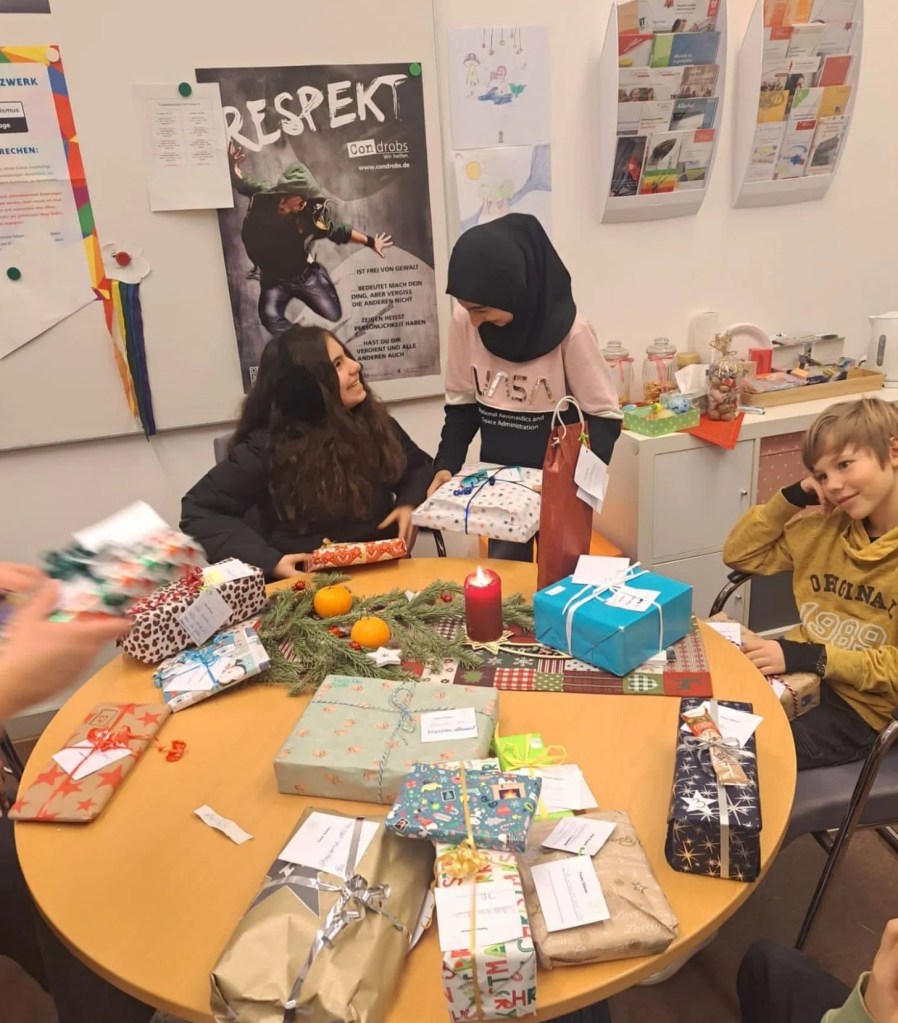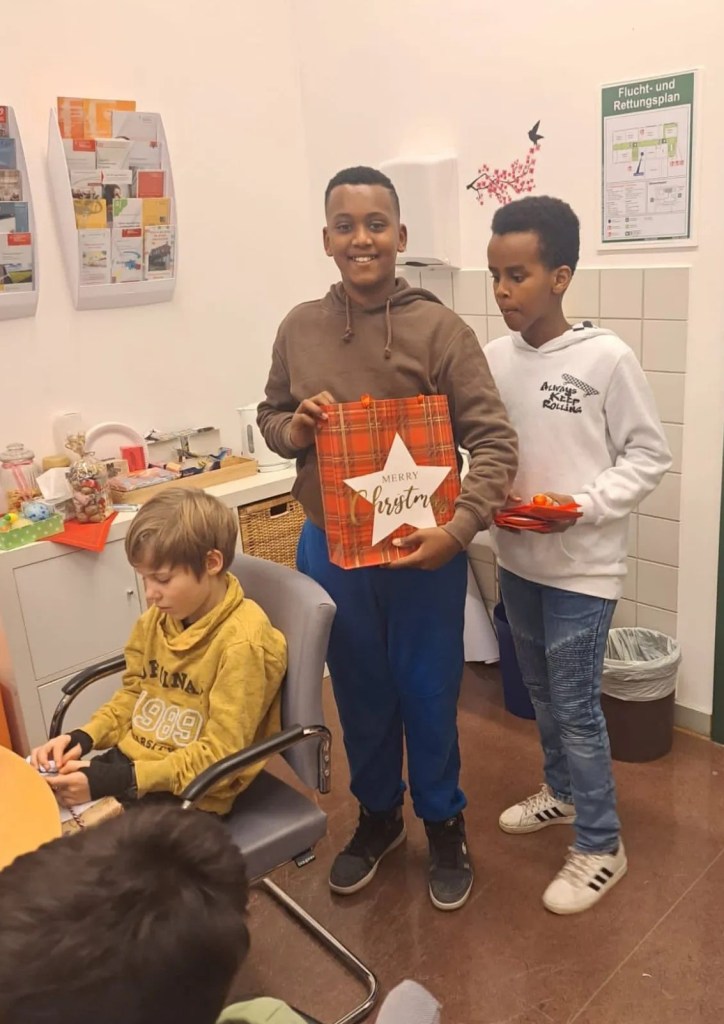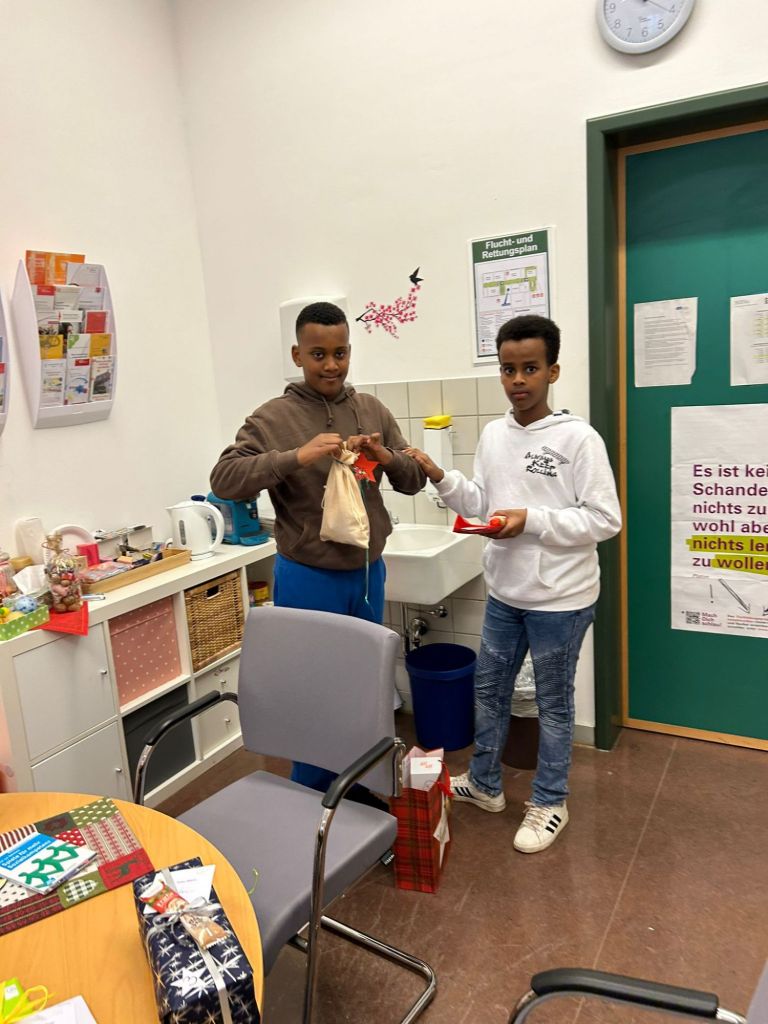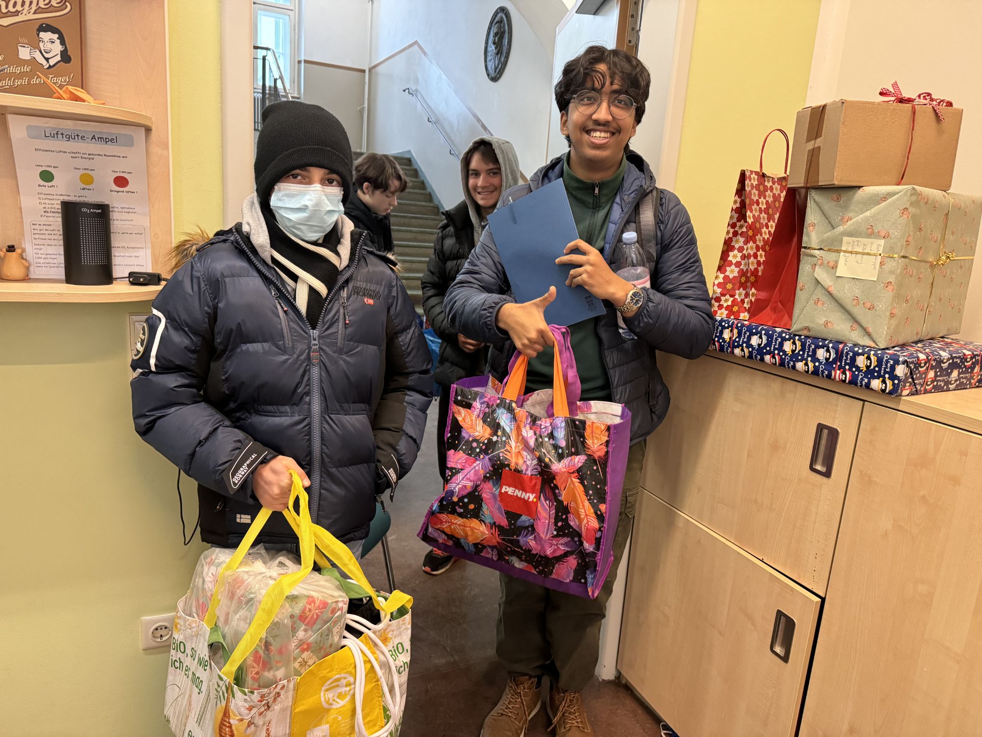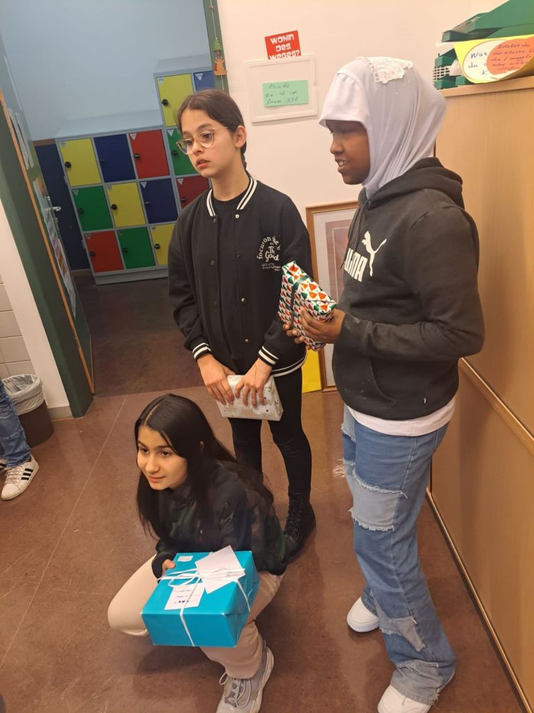 Hier die Nikolausaktion für die 5./6. Klassen der SMV (Yafet, Sena, Ivana) unterstützt durch Herrn Weichselgartner und die Weihnachtspäckchen für bedürftige Kinder im Münchner Süden – eine Aktion des Sozialbürgerhauses: