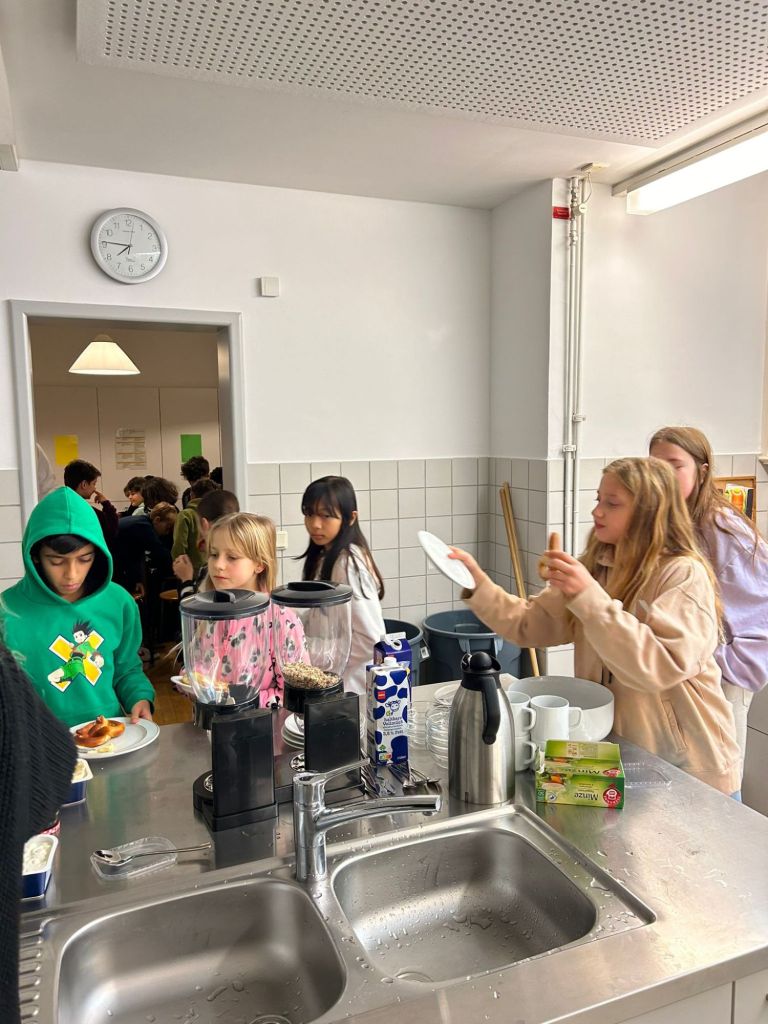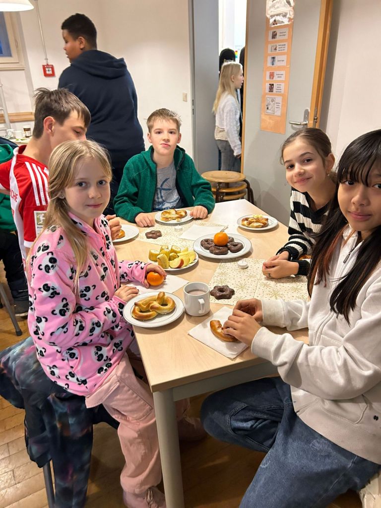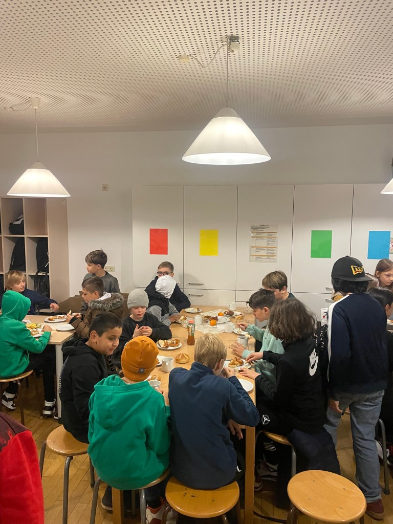 Das Weihnachtsfrühstück am 15. Dezember 2023 von der SMV (Joulina, Schahin, Yafet) und Frau Daskalova, unterstützt durch Frau Reiter und Frau Winkler, fand einen enorm großen Anklang: