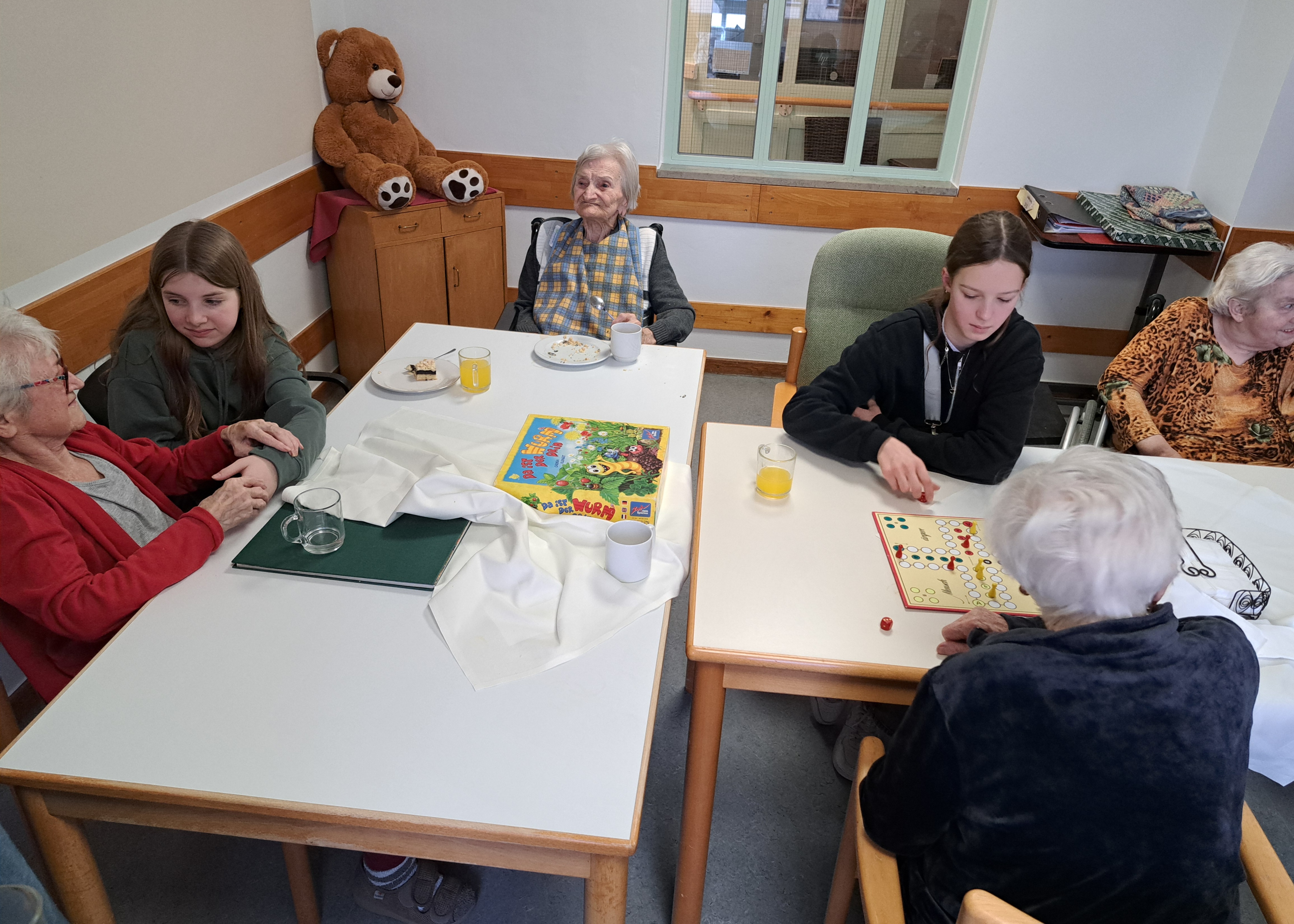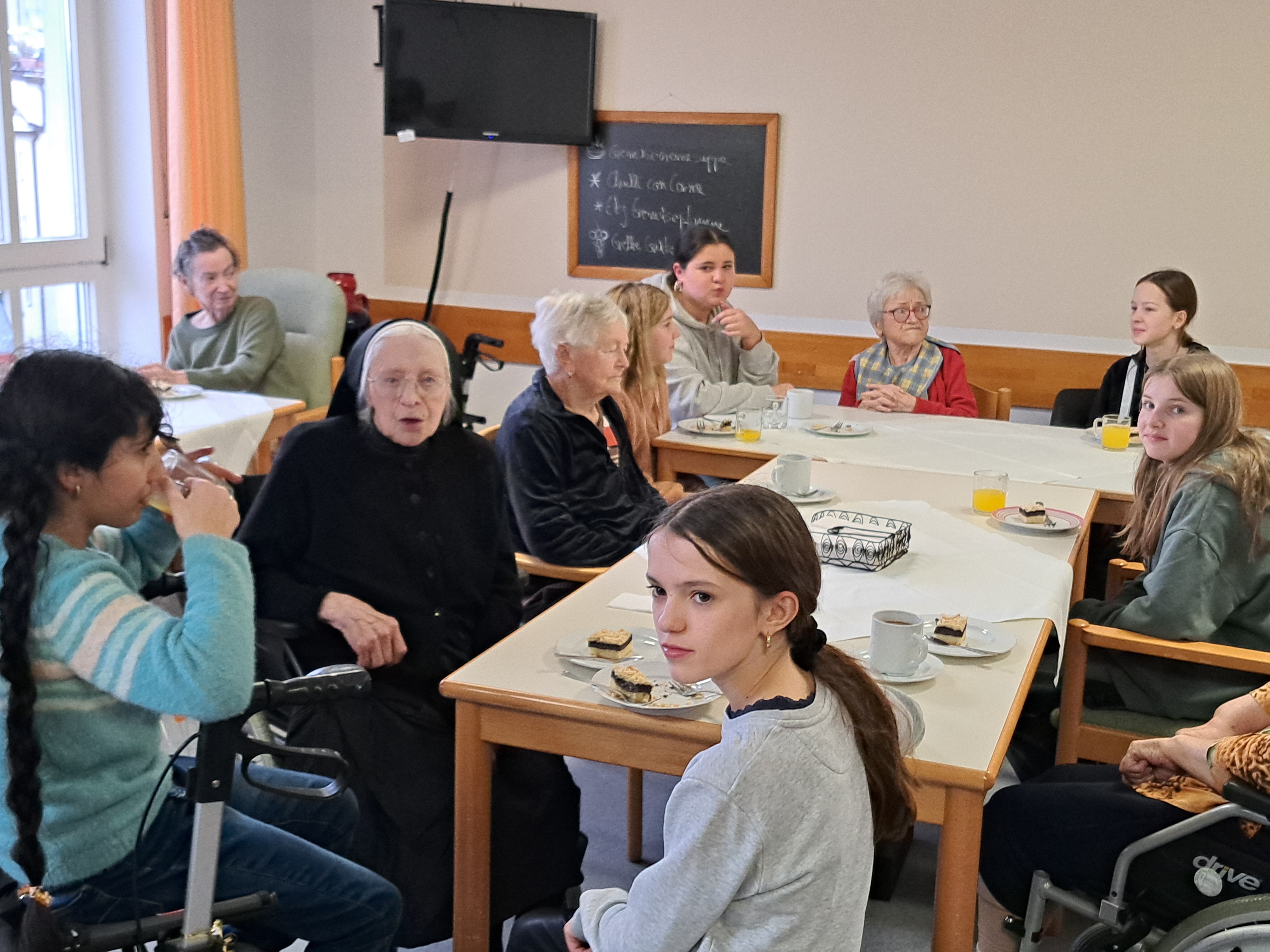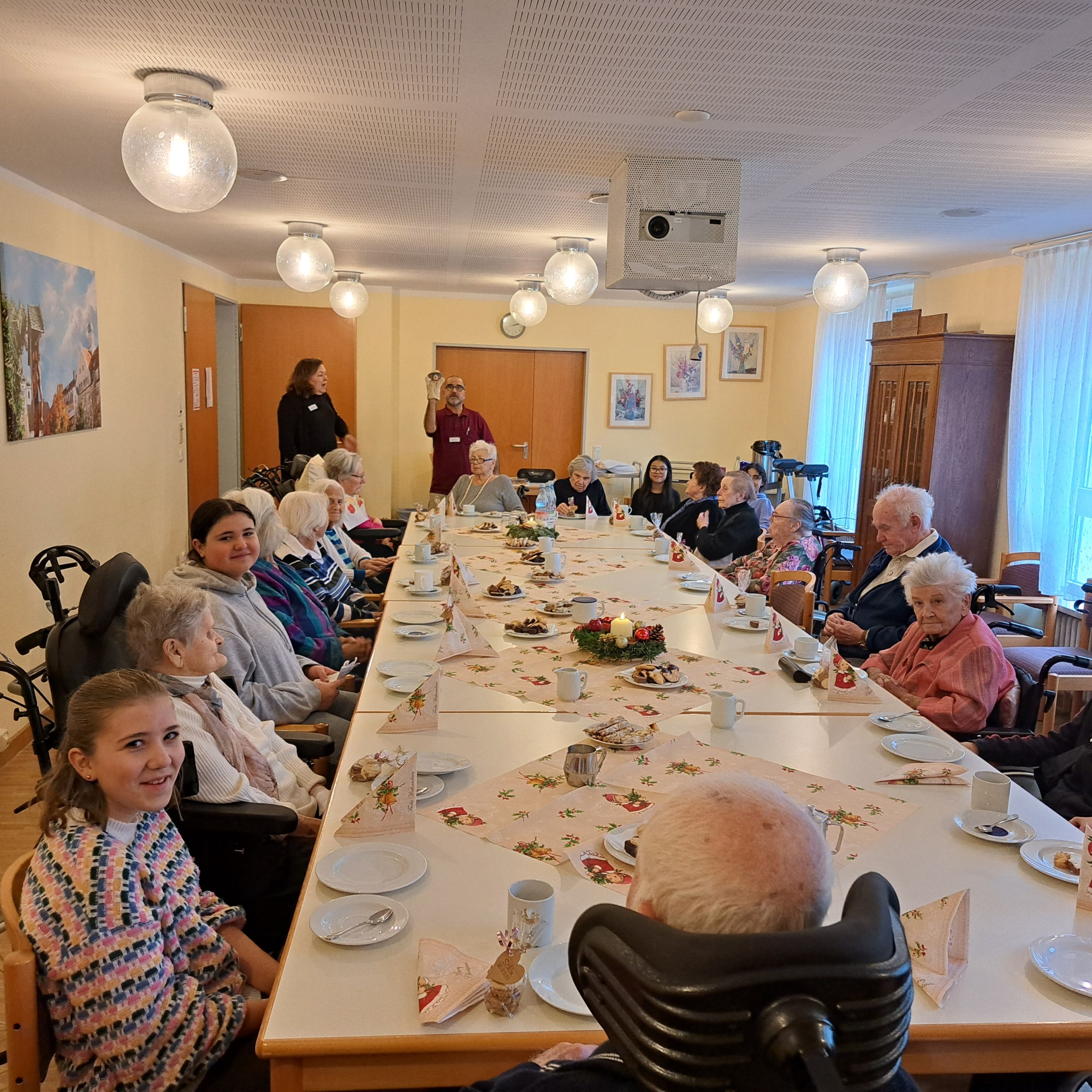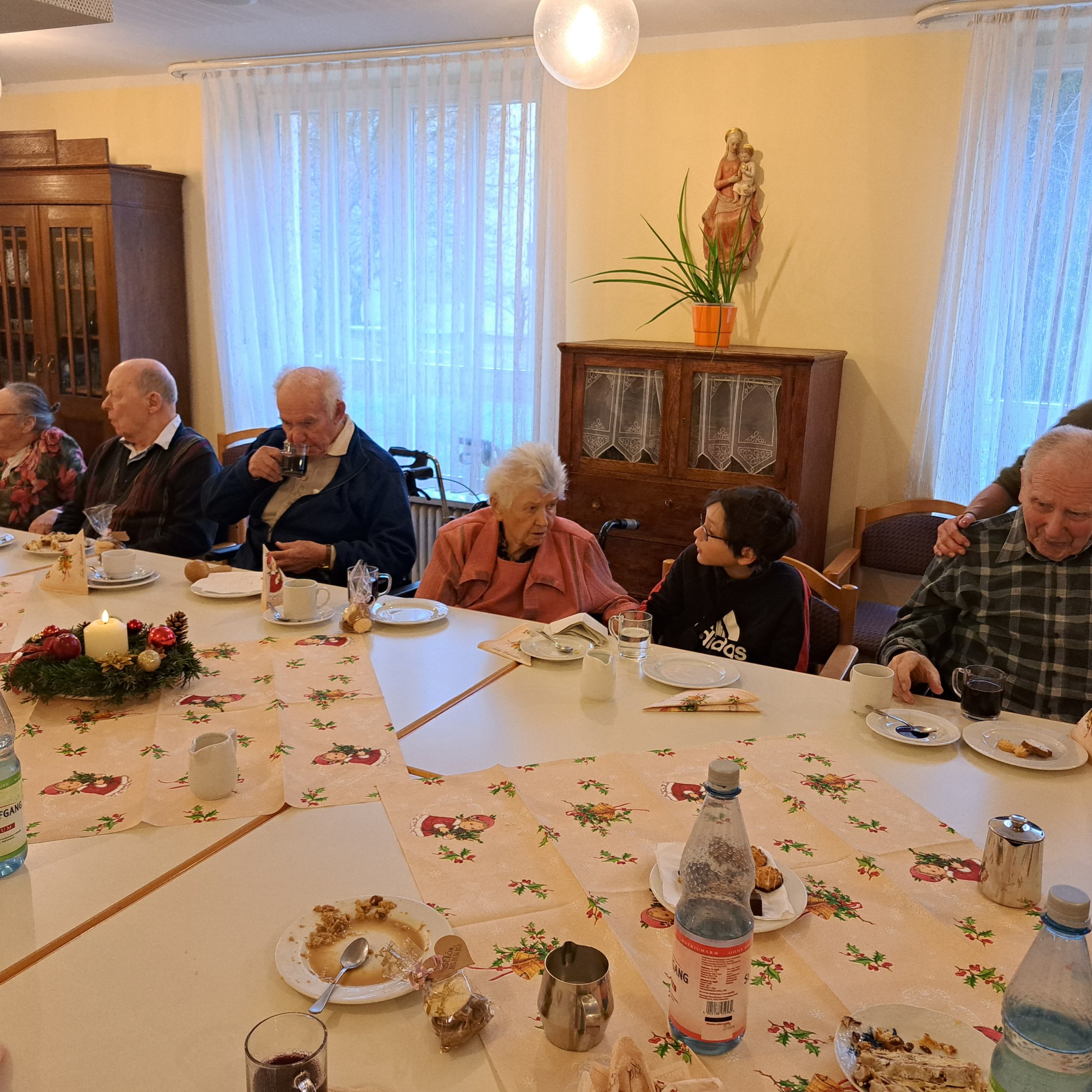 Am 13. Dezember 2023 wurden die Berührungsängste in ersten Gesprächen mit den Senioren abgebaut. Kaffee einschenken, Kuchen anbieten, beim Essen und Trinken Hilfe und Gesellschaft leisten – waren dazu da, sich gegenseitig kennen zu lernen.