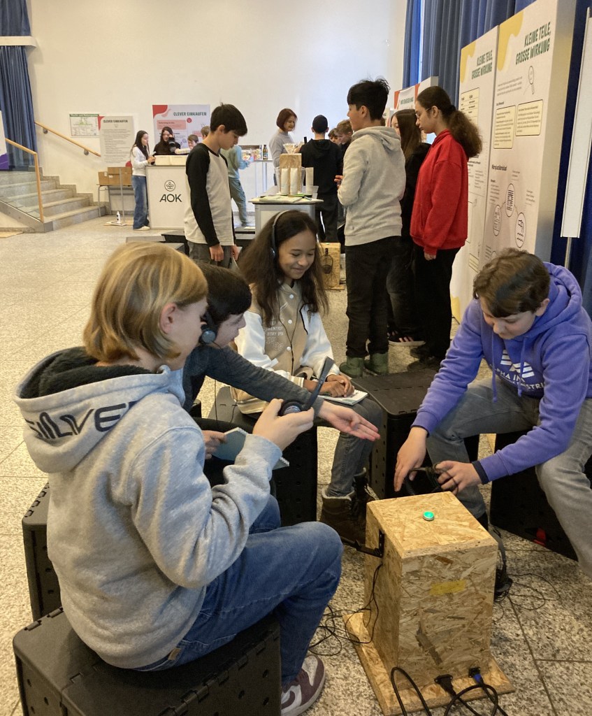 Auf Initiative von Herrn Fürst und Frau Winkler verwandelte sich unsere Aula für knapp zwei Wochen in eine Lernplattform. Im Fokus: das Thema des nachhaltigen Konsums.