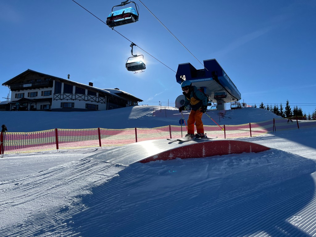 Schon am zweiten Tag waren einige Skischüler mit Herrn Fürst rasant unterwegs. An der Technik wurde gefeilt, Sprünge geübt und der Einkehrschwung klappte auch phänomenal.