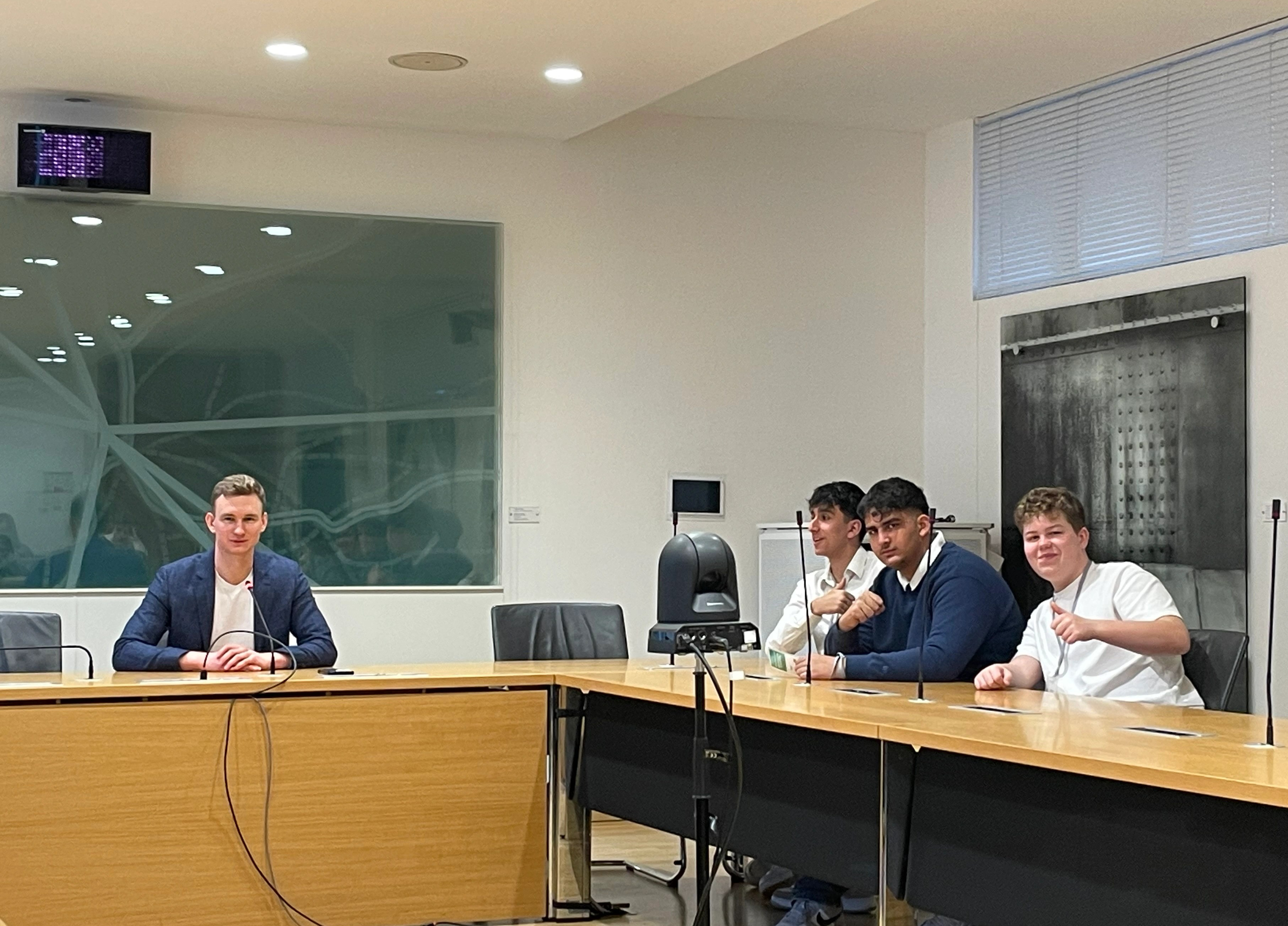 Nachdem wir am Haupteingang von Herrn Siekmann und seinem Team empfangen wurden, ging es durch die Sicherheitskontrollen direkt in einen Sitzungssaal für ein persönliches Gespräch. Hier hatte die Klasse die Möglichkeit, Herrn Siekmann Fragen zu stellen. Wir erfuhren unter anderem, für welche Themen der Abgeordnete zuständig ist, wie eine Arbeitswoche abläuft, wo er gerne Urlaub macht und welchen Nebenjob er als Schüler hatte.