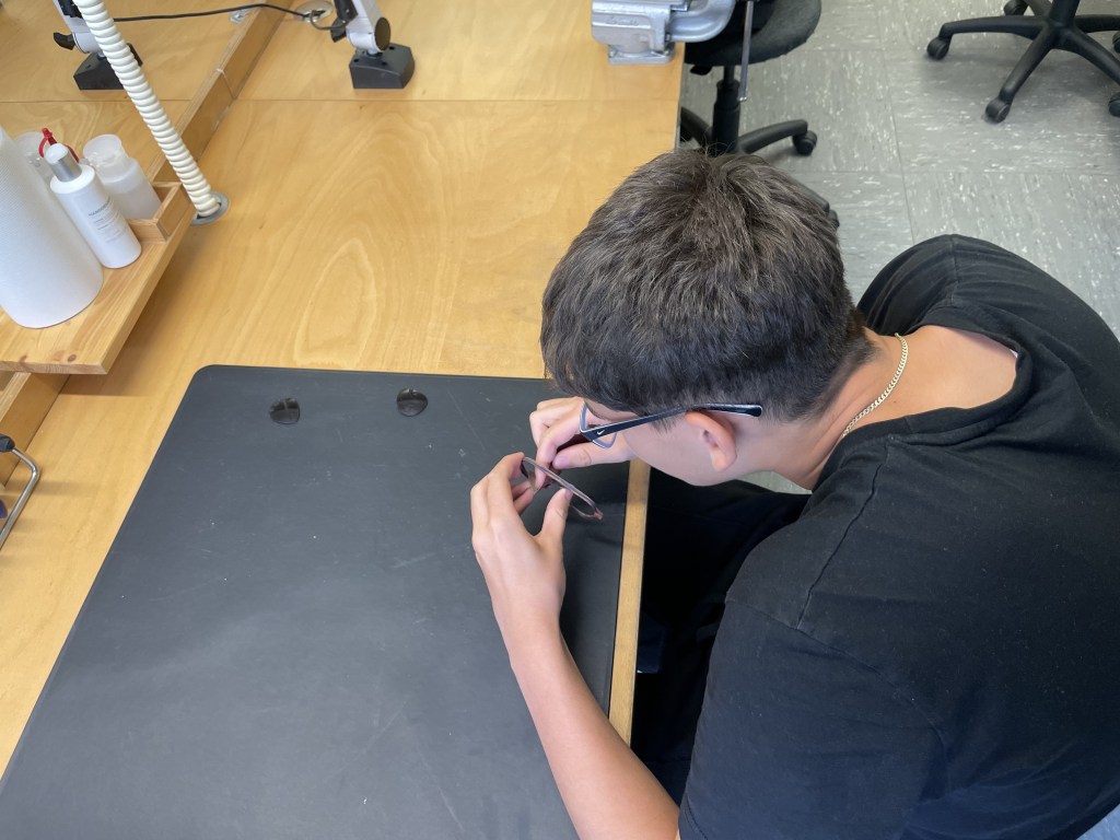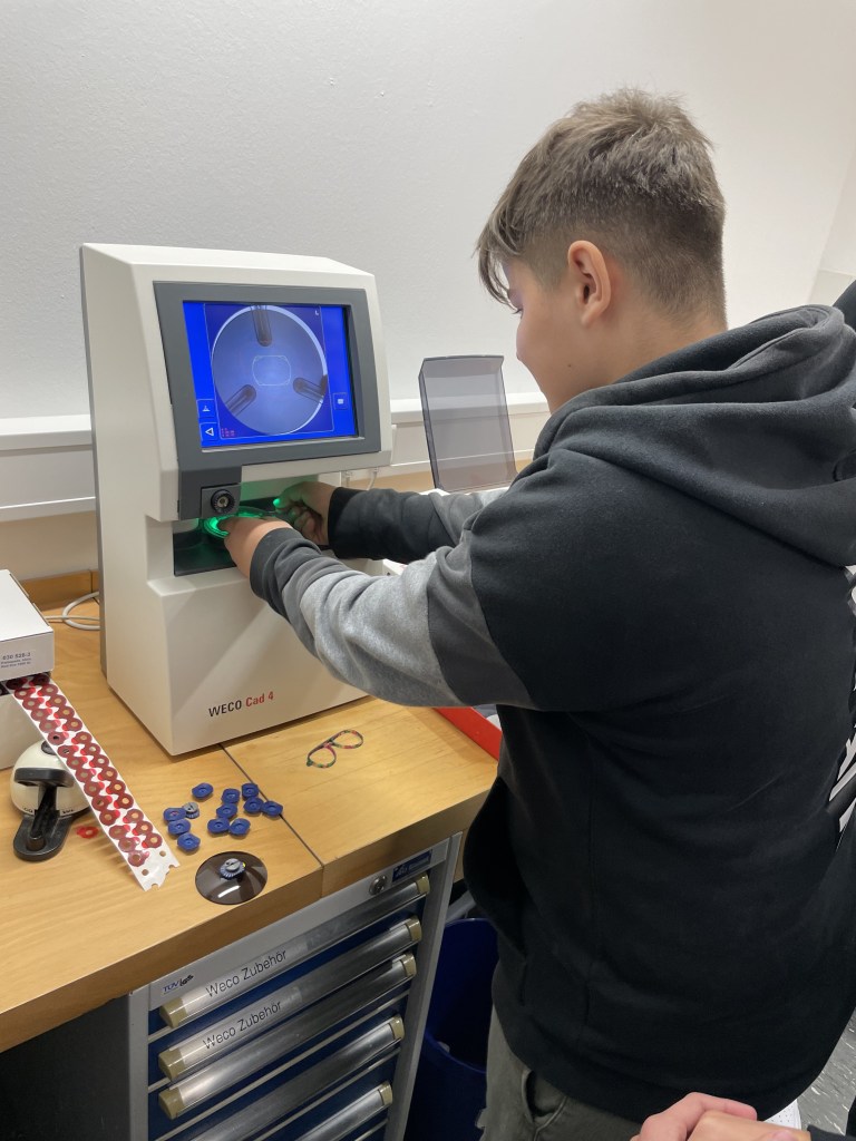 In den Lernwerkstätten der Optikerkette „Fielmann“ durften die Schüler selbst mit den verschiedenen Brillengläsern und -gestellen arbeiten.
