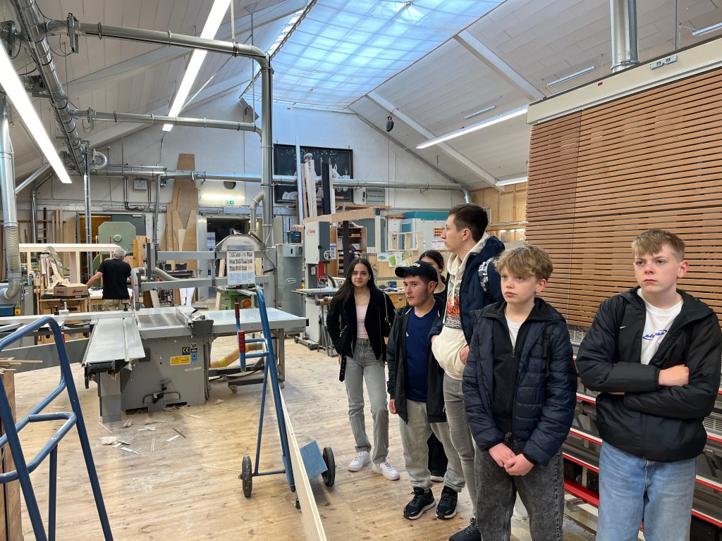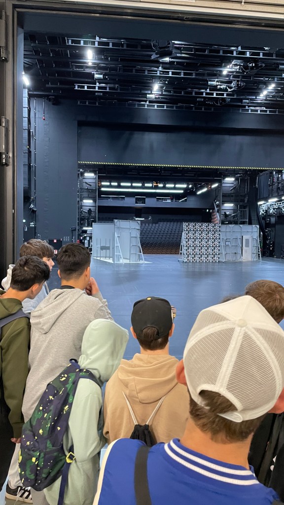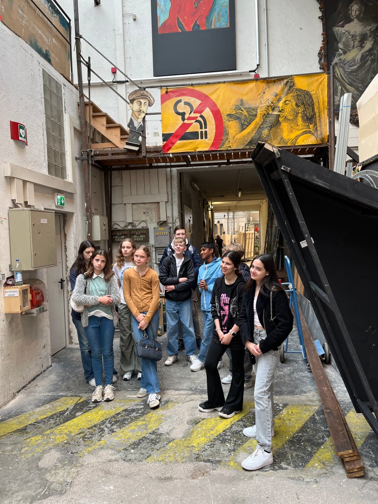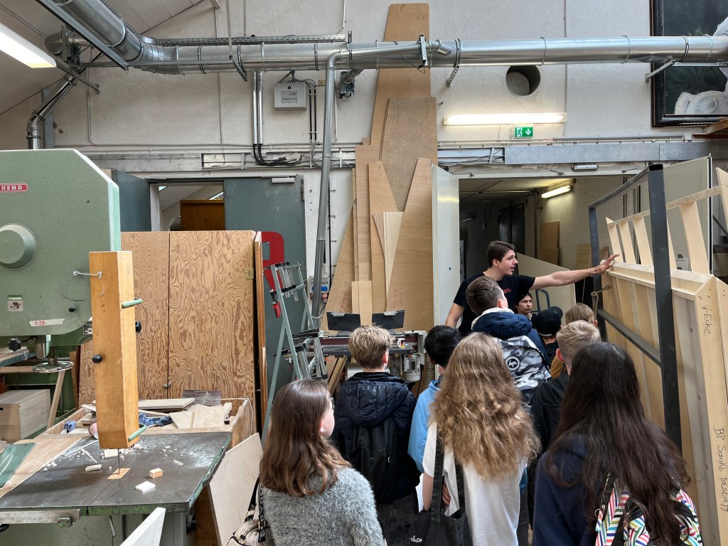 In den Werkstätten der Bayerischen Staatsoper führte Elias Triebel, der vor vier Jahren seinen Abschluss an unserer Schule gemacht hat, die Jugendlichen hinter die Kulissen. Als Schreiner hat er hier seine Lehre absolviert und arbeitet im Kulissenbau für das Theater oder die Oper.