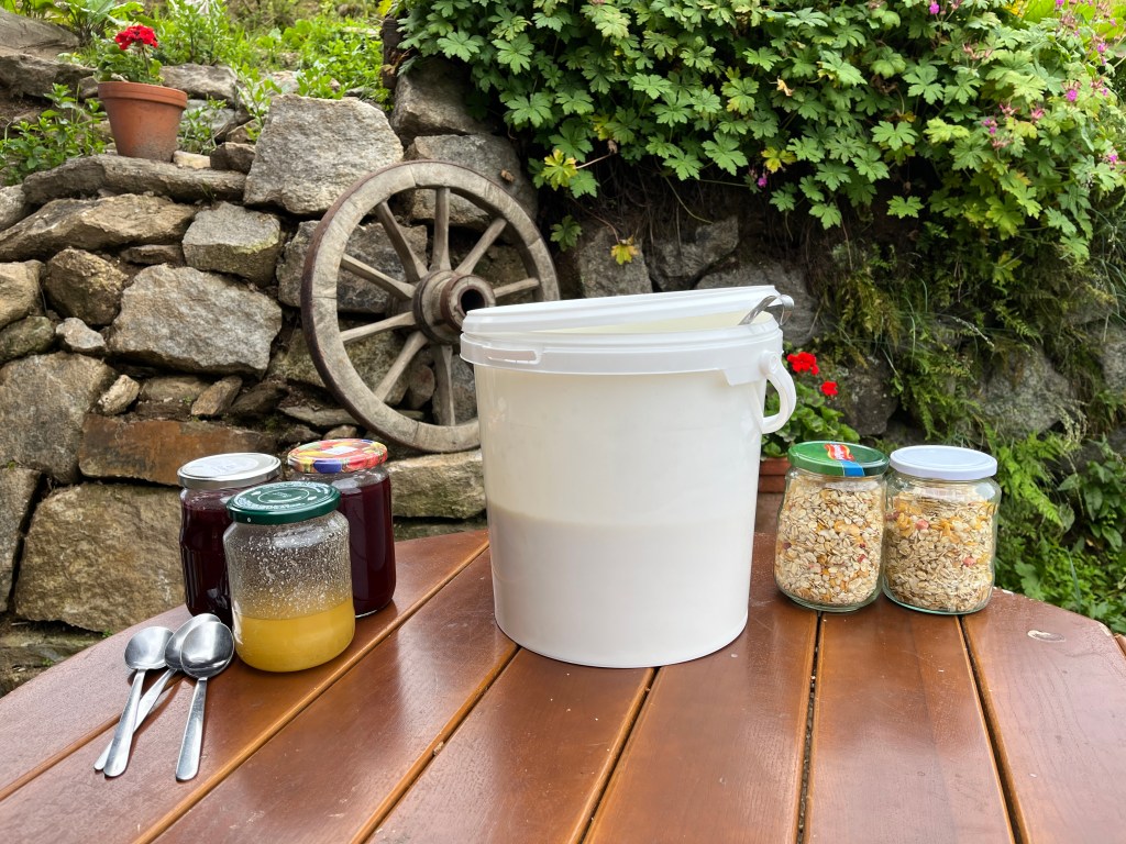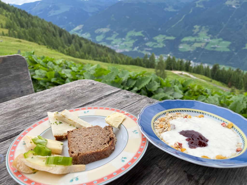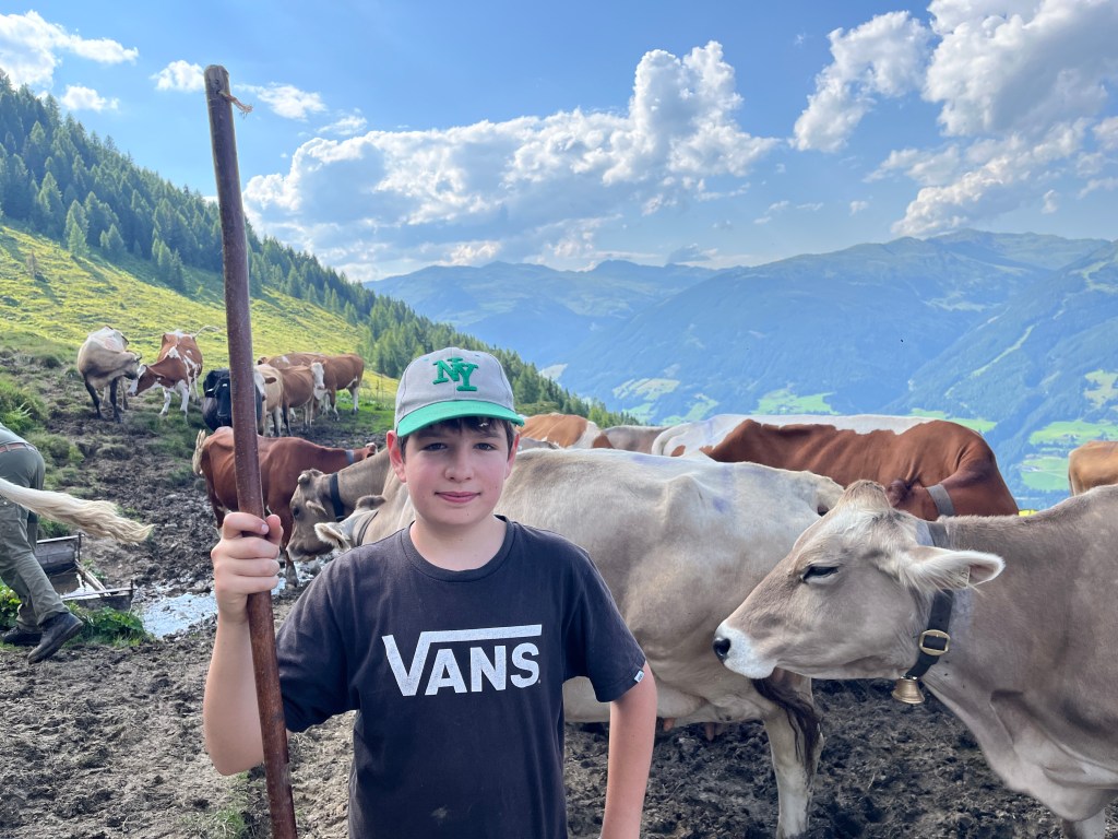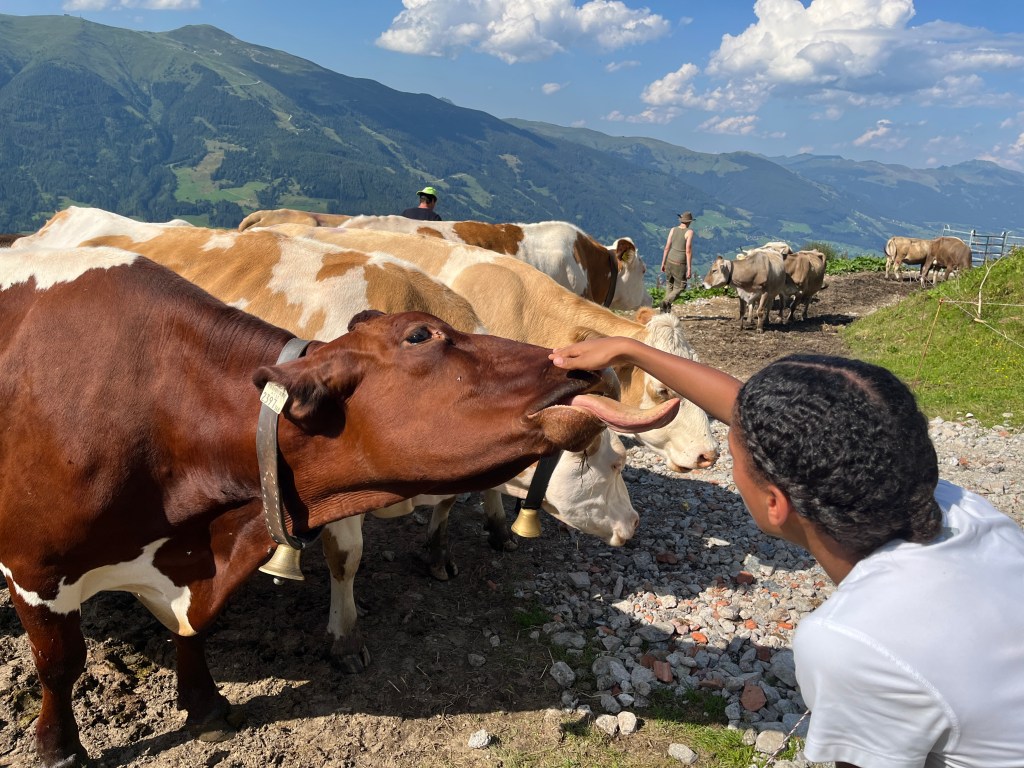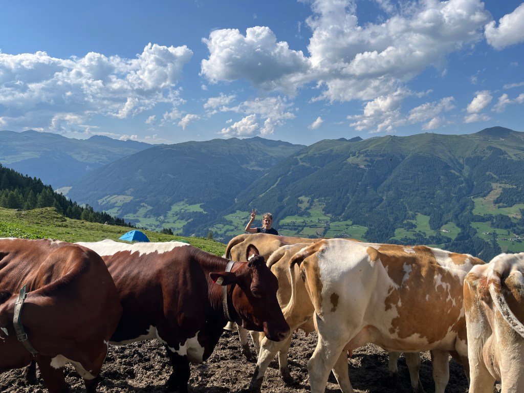 Bei unserem Alm-Projekt (er)lebten wir Almwirtschaft und deren Bedeutung für den alpinen Raum, hautnah! Wir mussten uns um die Tiere kümmern, Milchkühe treiben, Brot und Süßspeisen backen sowie sämtliche Arbeiten verrichten, die auf einer Alm anfallen. Auch bei der Zubereitung von Frühstück, Mittag- und Abendessen sowie beim Abspülen haben wir tatkräftig mit angepackt.