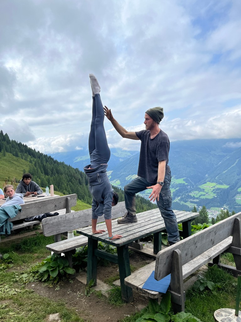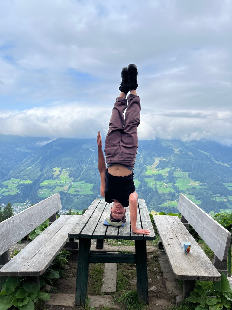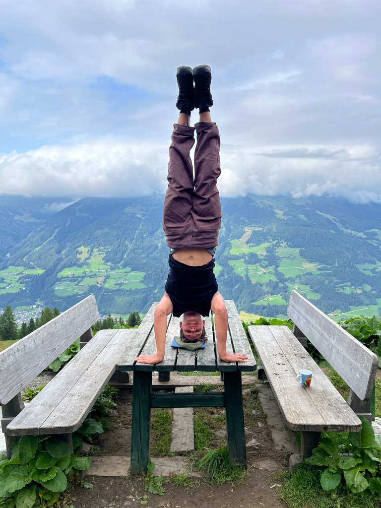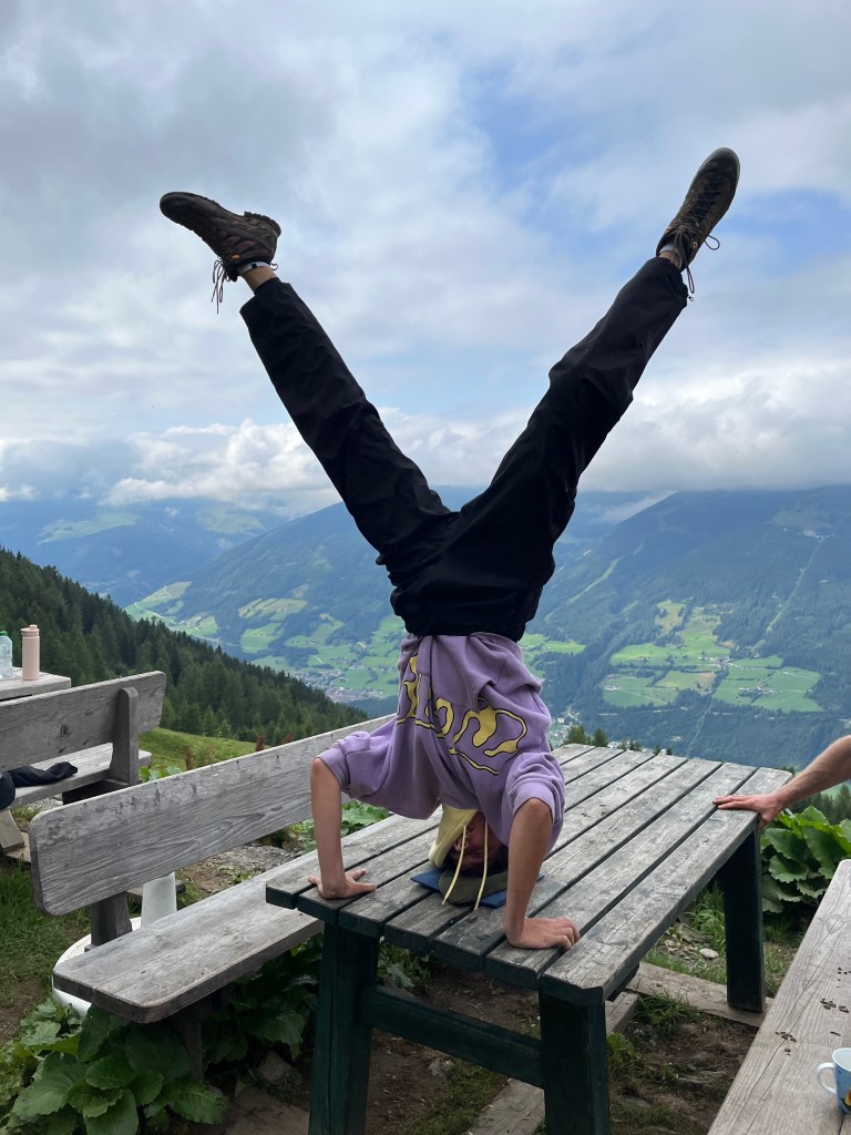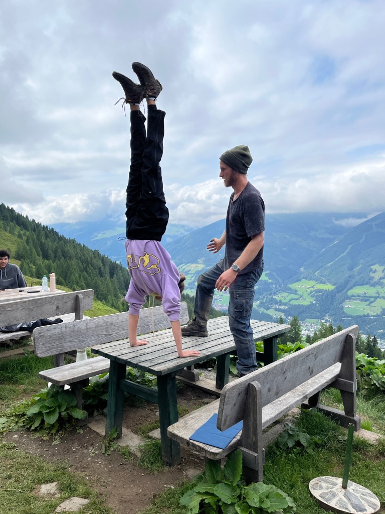 Aus dem Nichts und ganz spontan zeigte Andi seine akrobatischen Fähigkeiten und machte plötzlich einen Handstand auf einem der Tische. Umgehend ließen sich davon einige Kids animieren und zeigten ihre turnerischen Skills.