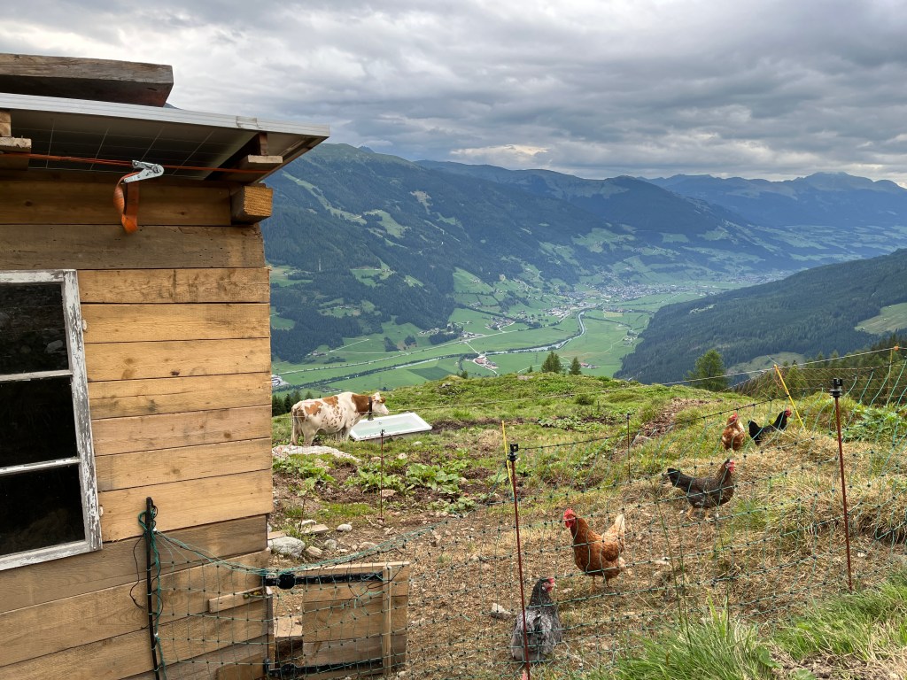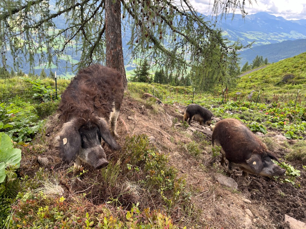 • Tiere: 25 Hühner, 5 Mangalica Schweine, 27 Milchkühe, 1 Mutterkuhherde mit Jungtieren, 44 Pinzgauer Strahlenziegen, 17 Tauernscheckenziegen
