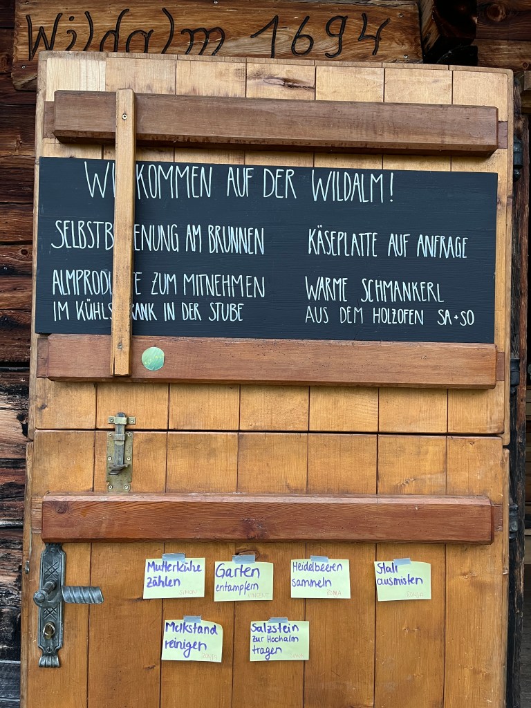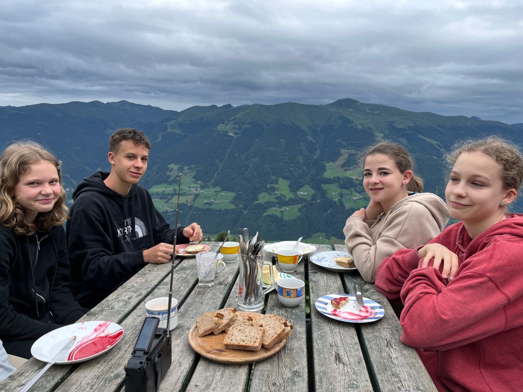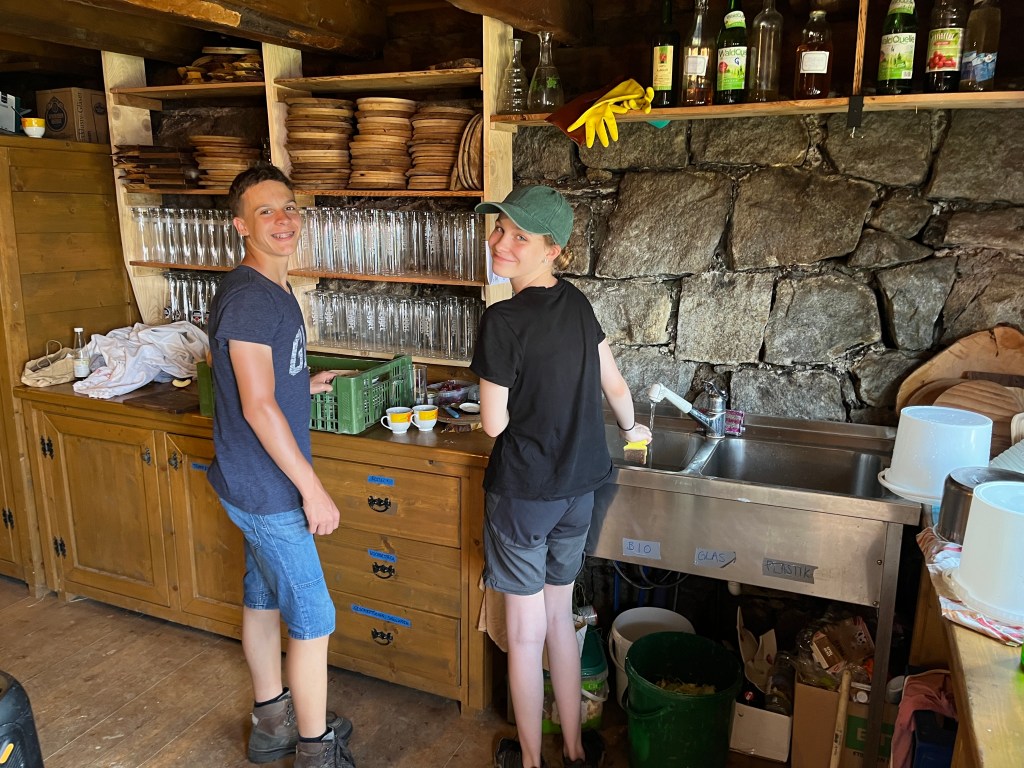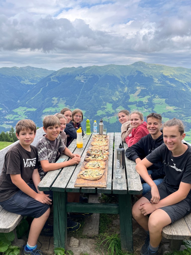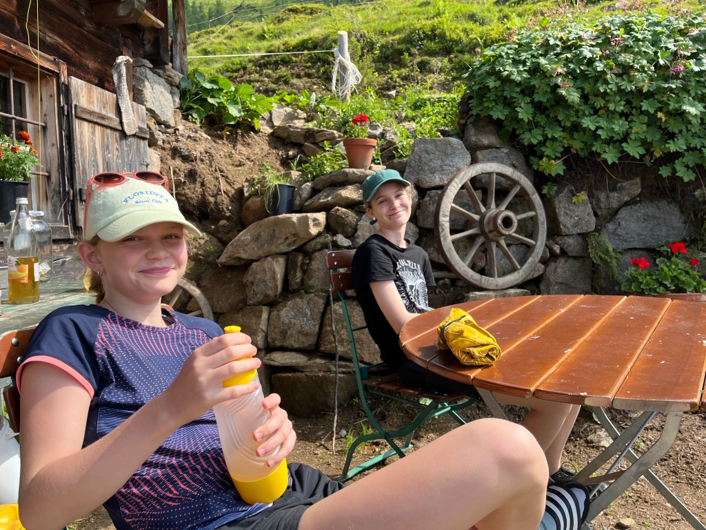Nachdem Aufstieg begrüßte uns das Stammteam der Wildalm – bestehend aus Claudia, Ronja, Andi und Simon sowie den Helfern Kathi, Peter und Vincent – ganz herzlich. Nach dem Kennenlernen konnten sich die Kids auf der Alm einrichten.
