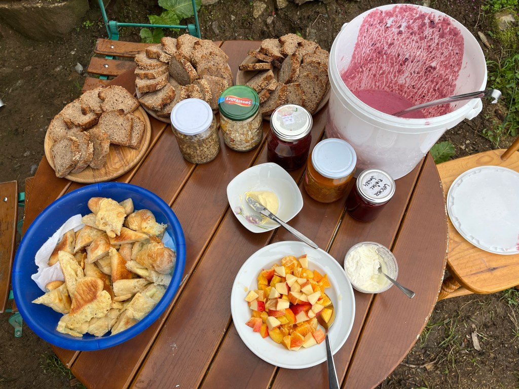 Sauerteigbrot, Käse- und Speckstangerl, Apfel-Ricotta-Kuchen, Mohnzöpfe, Pizza, Krautfleckerl, Blaubeeren Jogurt und und und…