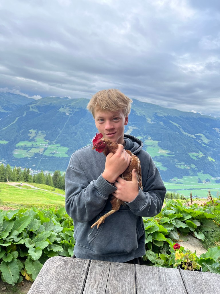 Mitte Juni hatte die Wildalm um Hilfe zum Bau des Hühnerstalls aufgerufen. Unser ehemaliger Schüler Elias und Gründungsmitglied der Outdoor-AG, der vor vier Jahren seinen Abschluss gemacht hat und inzwischen gelernter Schreiner ist, folgte trotz Regen und Nebel umgehend dem Aufruf, düste am Sonntag, den 23. Juni 2024 mit seinem Motorradl auf die Wildalm und baute in nur einem Tag den Hühnerstall fertig. Networking par excellence!