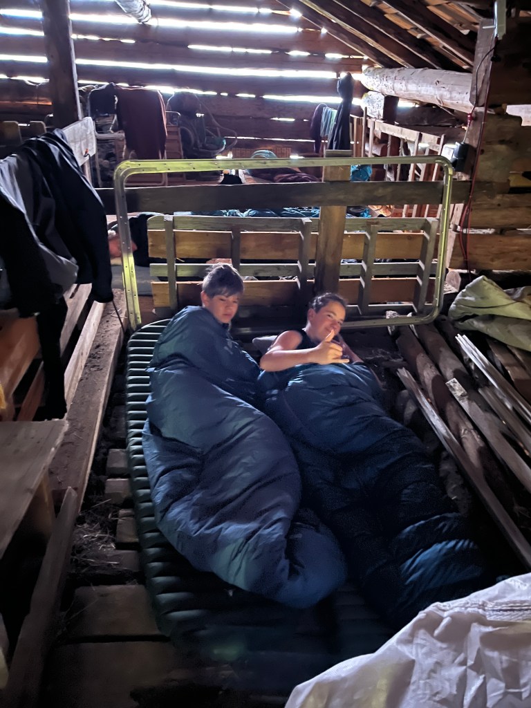 • Übernachtung: Zelt oder Heuboden über dem Stall