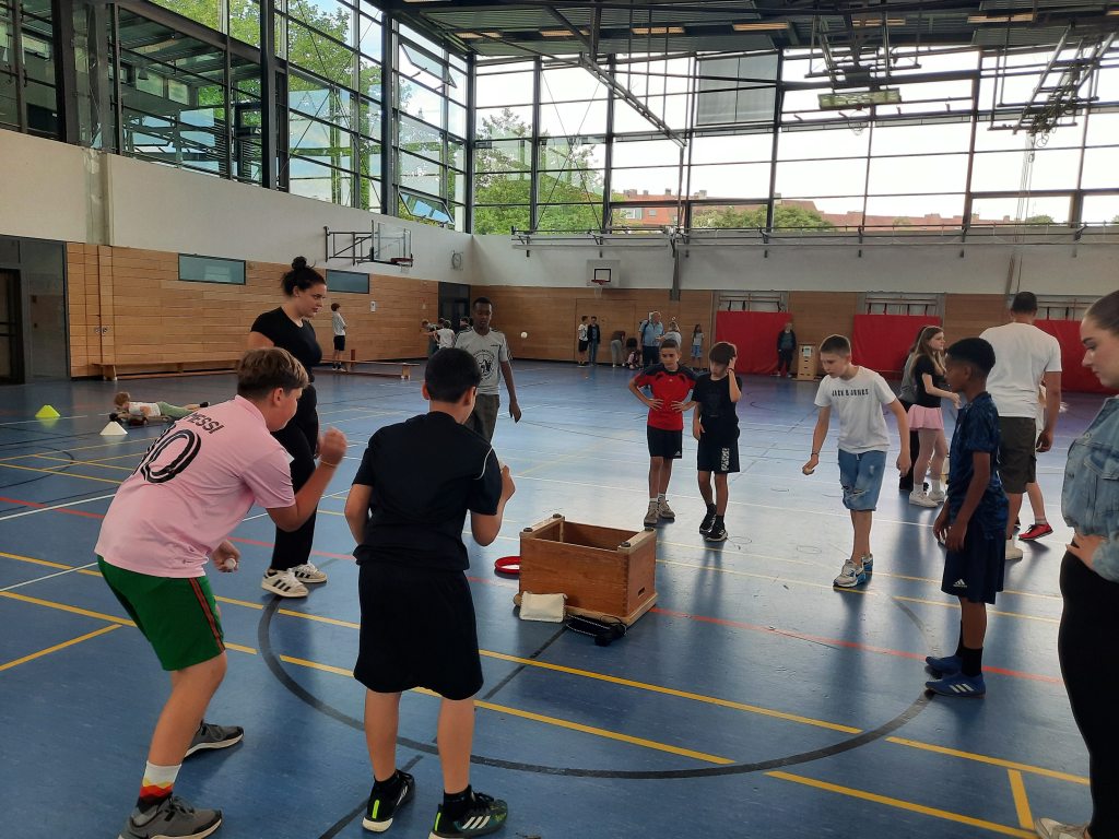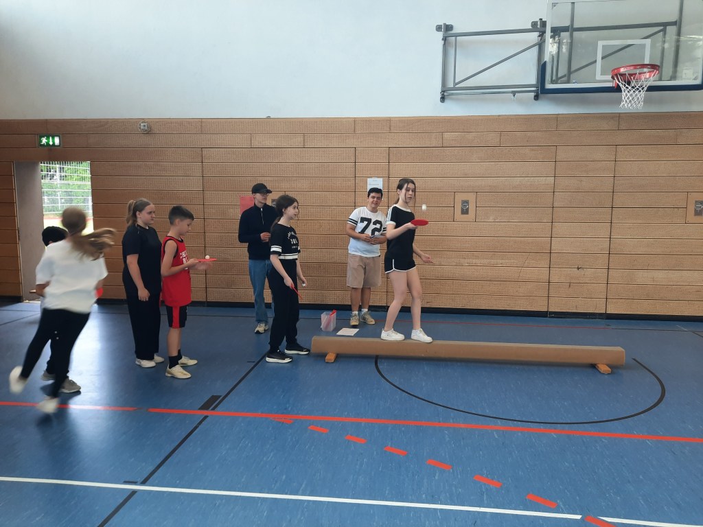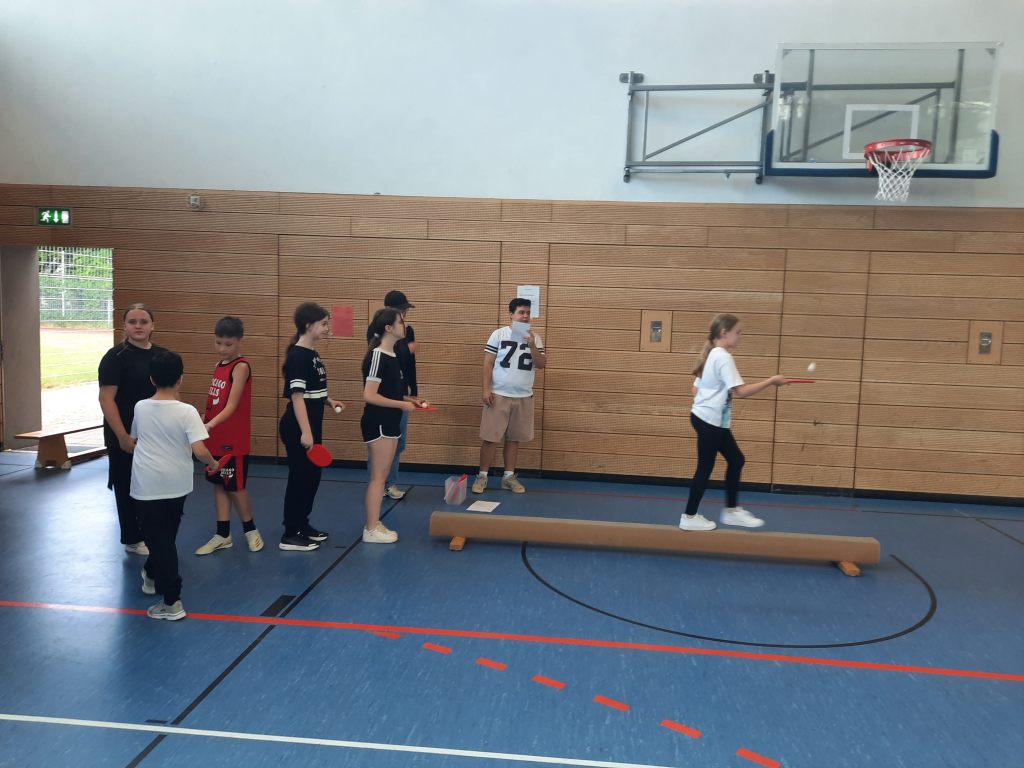 Am 22.07. durften die Jahrgangsstufen 5, 6 und 7 sich beim Sportfest beweisen. 12 Stationen standen den Gruppen bevor. Eierlegen, Tischtennisflippen, Kronkorken schnippen, balancieren, Football werfen, Rollbrett Parcour, „Eier legen“ und andere Geschicklichkeitsaufgaben durften die Kinder ausprobieren und dabei Punkte sammeln.