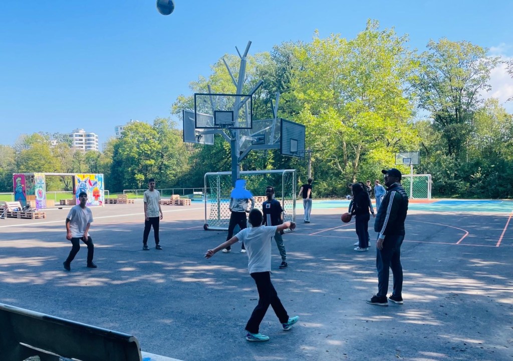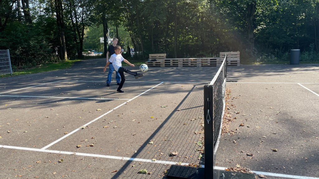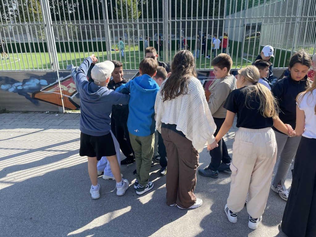 Klasse 8a auf dem Sportplatz in der Siemensstadt