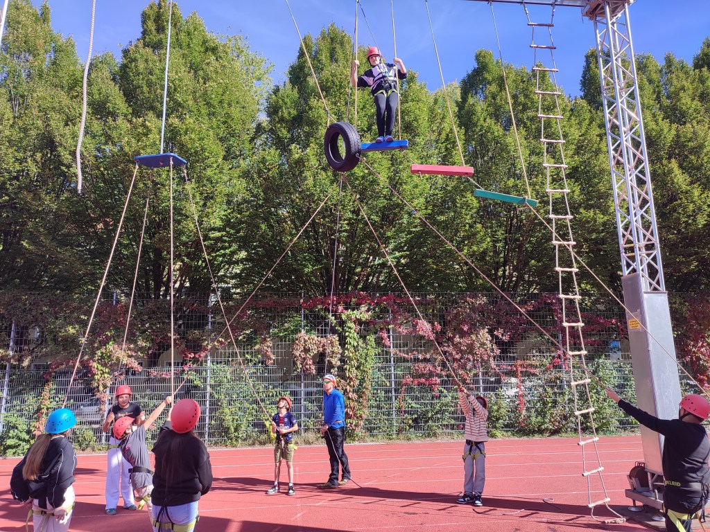 In den Herbstmonaten September und Oktober stand der Mobile Hochseilgarten auf dem Sportplatz unserer Schule. Die Schüler der Klassenstufen 5 bis 7 waren hier neben den Klassen aus anderen Münchner Schulen aktiv.