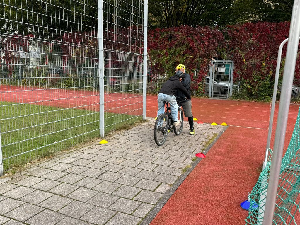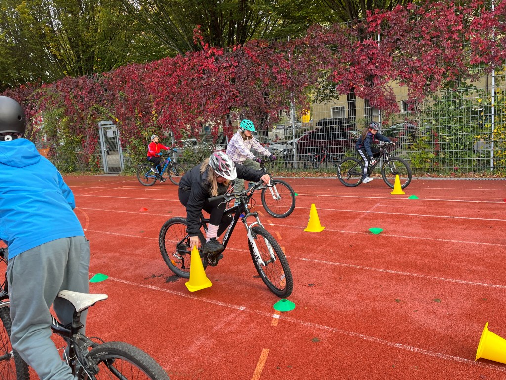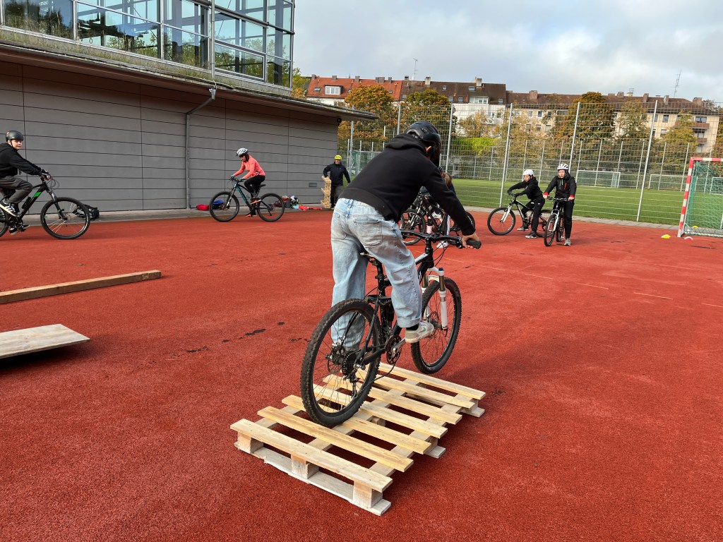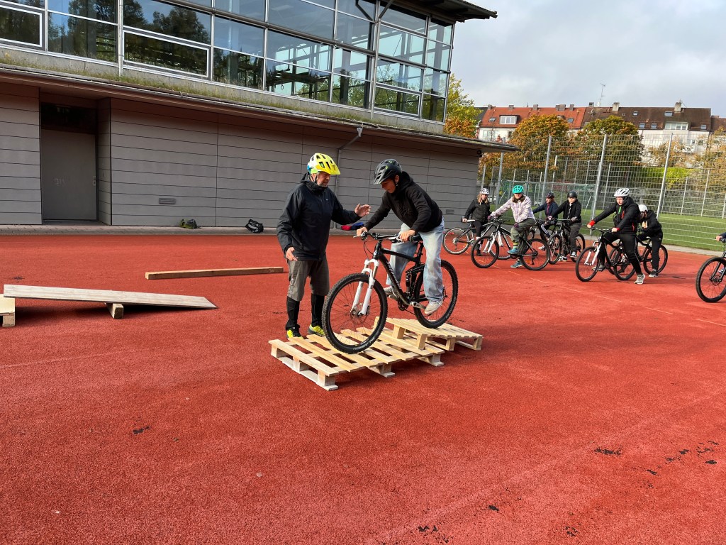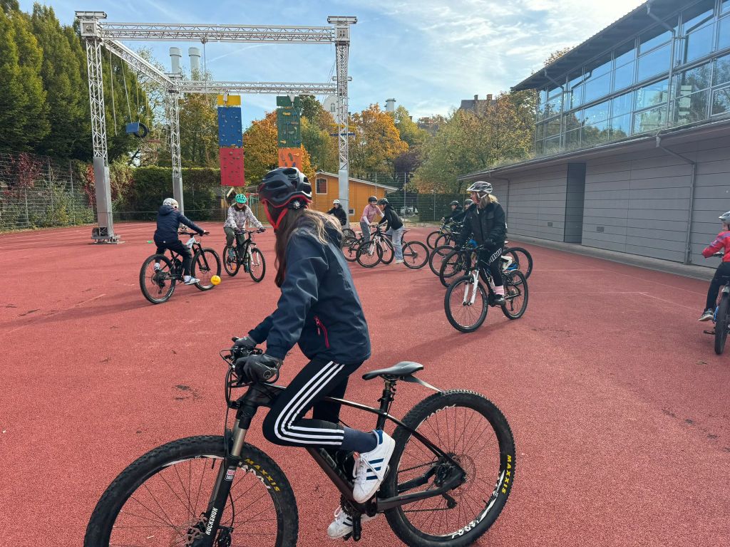 Im letzten Schuljahr wurden auf ihre Initiative hin 14 Mountainbikes und die dazugehörigen Helme über das Referat für Bildung und Sport München angeschafft. Im September wurde die Werbetrommel für die AG in den Klassenstufen 7 und 8 gerührt. Am Samstag trafen sich dann 13 Schülerinnen und Schüler hochmotiviert zum Teil mit ihren eigenen Rädern auf dem Sportplatz der Schule.