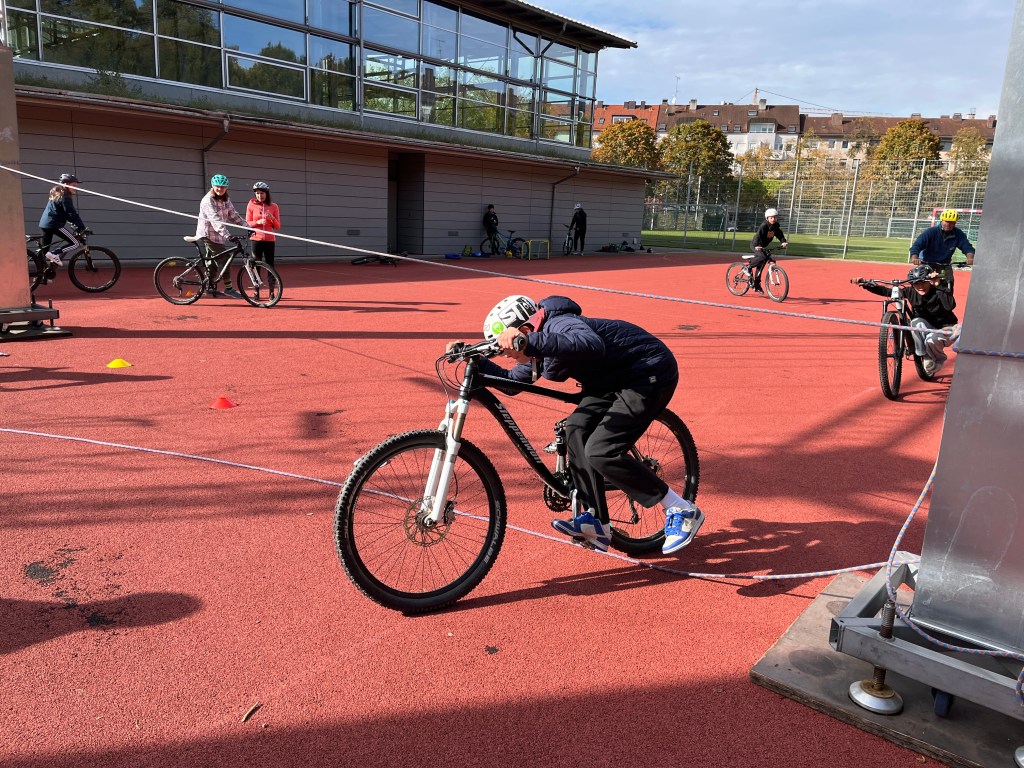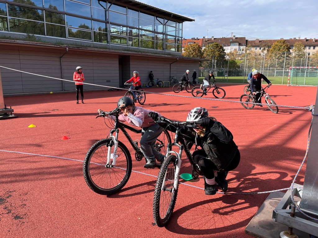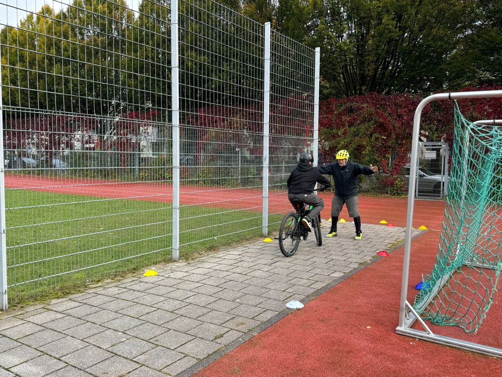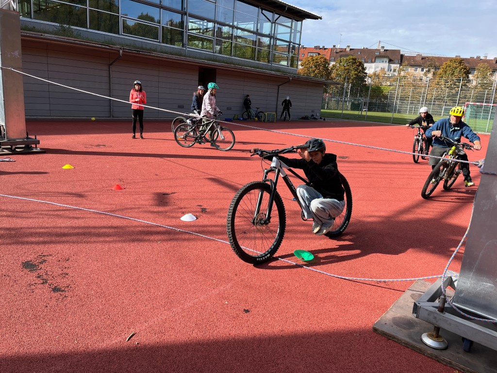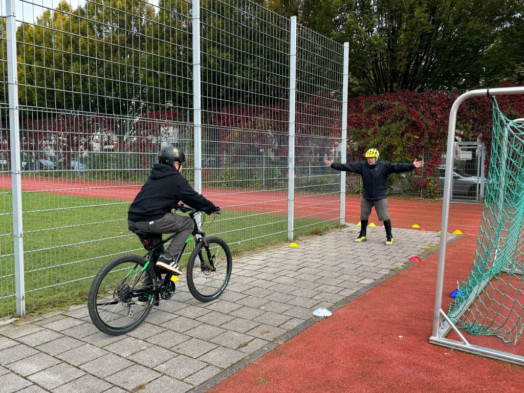Im letzten Schuljahr wurden auf ihre Initiative hin 14 Mountainbikes und die dazugehörigen Helme über das Referat für Bildung und Sport München angeschafft. Im September wurde die Werbetrommel für die AG in den Klassenstufen 7 und 8 gerührt. Am Samstag trafen sich dann 13 Schülerinnen und Schüler hochmotiviert zum Teil mit ihren eigenen Rädern auf dem Sportplatz der Schule.