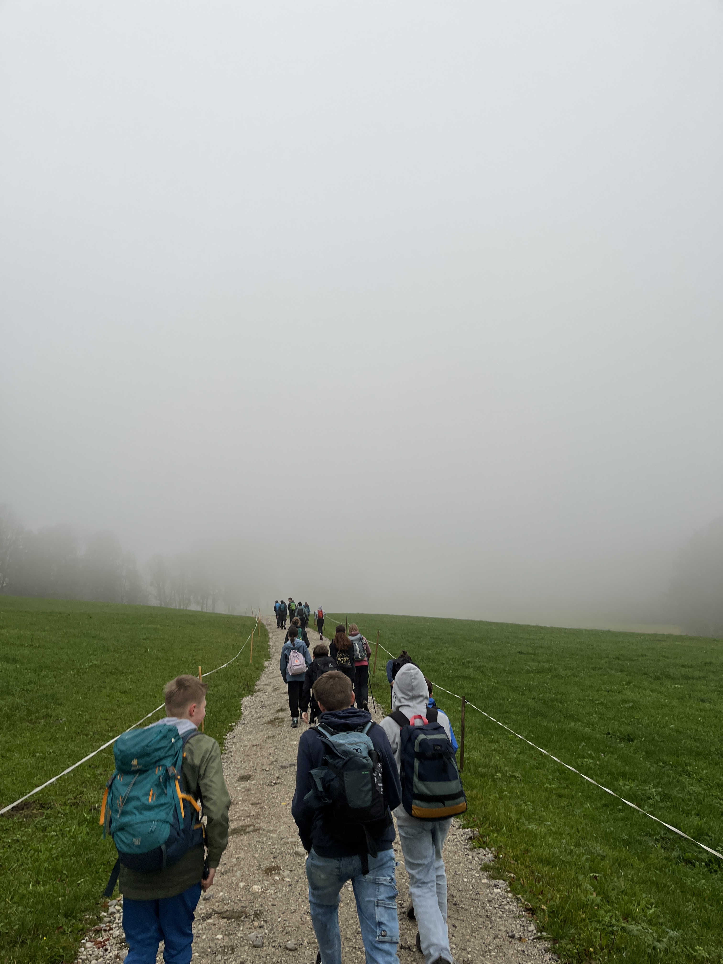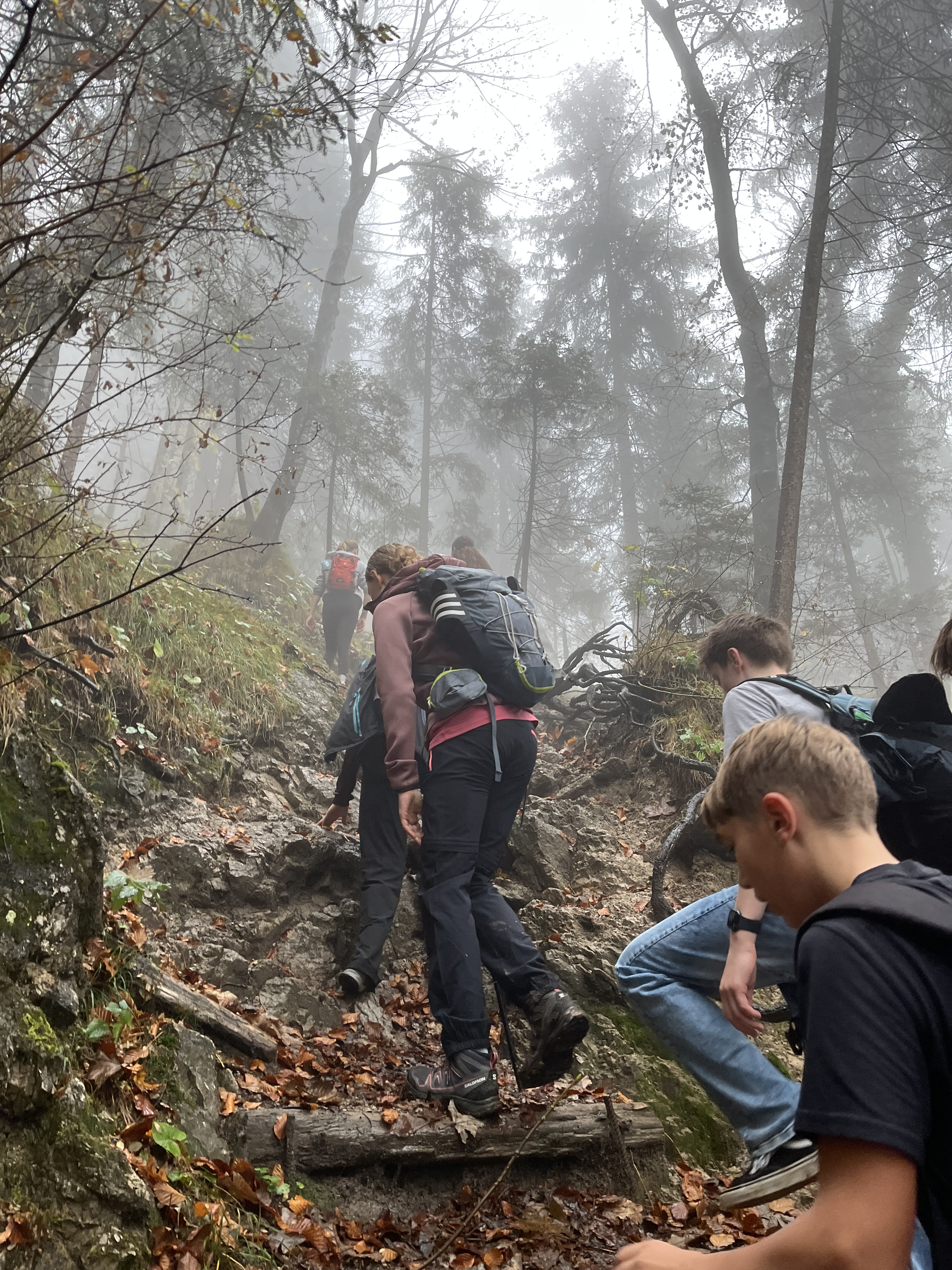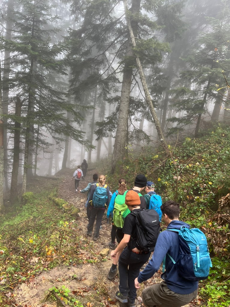 Am Mittwoch, den 23. Oktober 2024, suchte sich die Outdoor-AG den wohl wettertechnisch schlechtesten Tag der Woche raus und wanderte auf die Lenggrieser Hütte. Die 661hm auf 6,8km vom Lenggrieser Bahnhof aus stellen für die Outdoorler keine Herausforderung mehr dar. Und so flitzen die Kids in unter zwei Stunden durch dichten Nebel auf die Hütte. Bei dem angeschlagenen Tempo konnten Frau Maurer und Herrn Fürst nur noch hinterher hecheln.