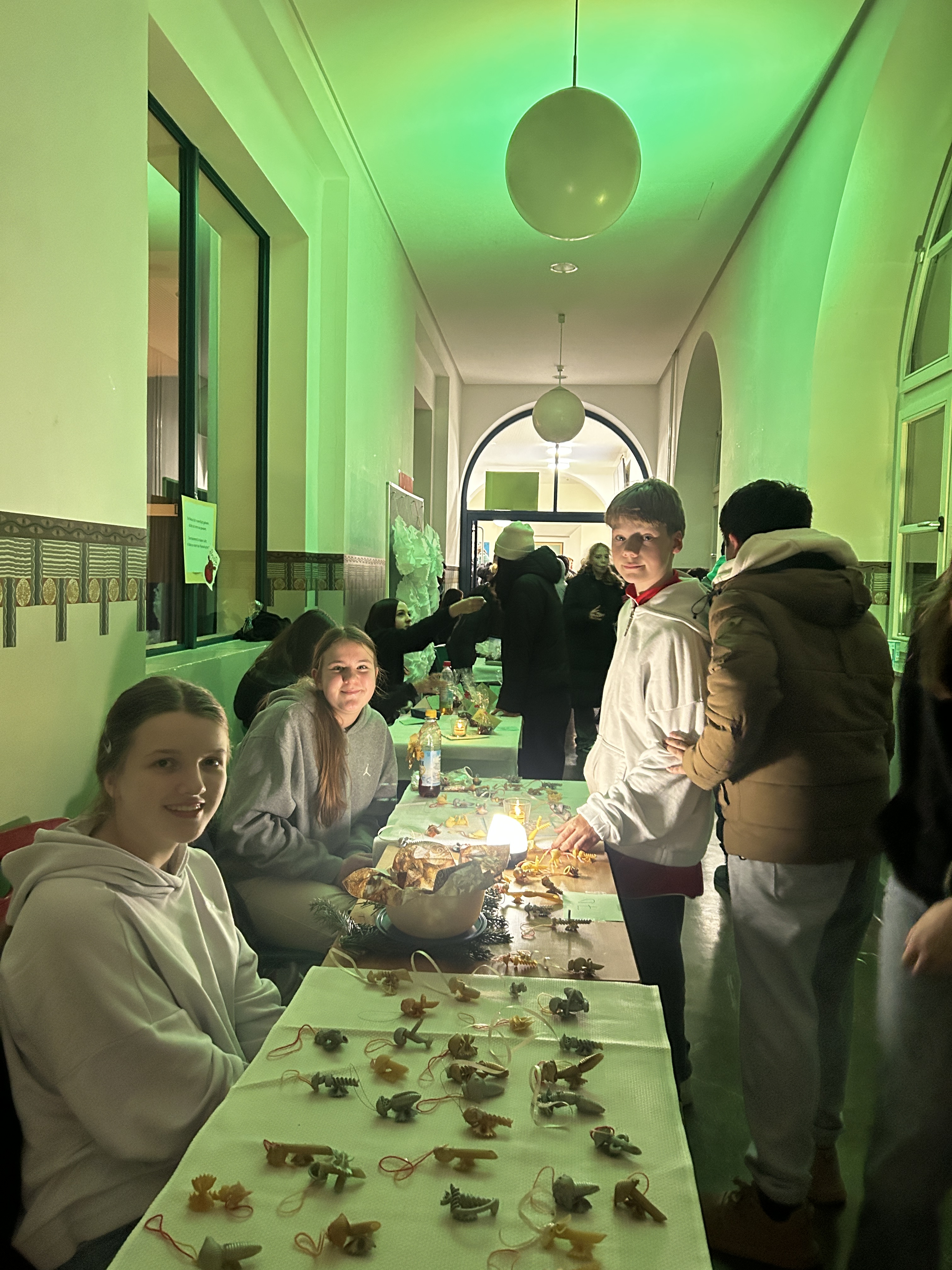 In den Gängen rund um die Aula präsentieren die Schülerinnen und Schüler der einzelnen Klassen kleine Geschenke oder Leckereien. In den Tagen zuvor wurde gemeinsam mit den Lehrern fleißig gebastelt oder gebacken.